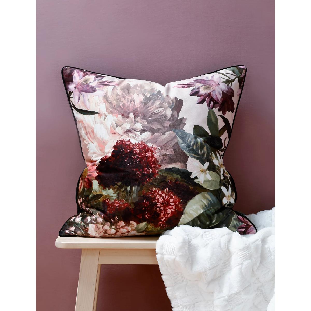Give your living space an instant update with this beautiful velvet cushion from MM Linen. It’s decorated with a dramatic floral print on one side and features elegant piping around the edges. The large square cushion is filled with feathers for a sumptuous feel.