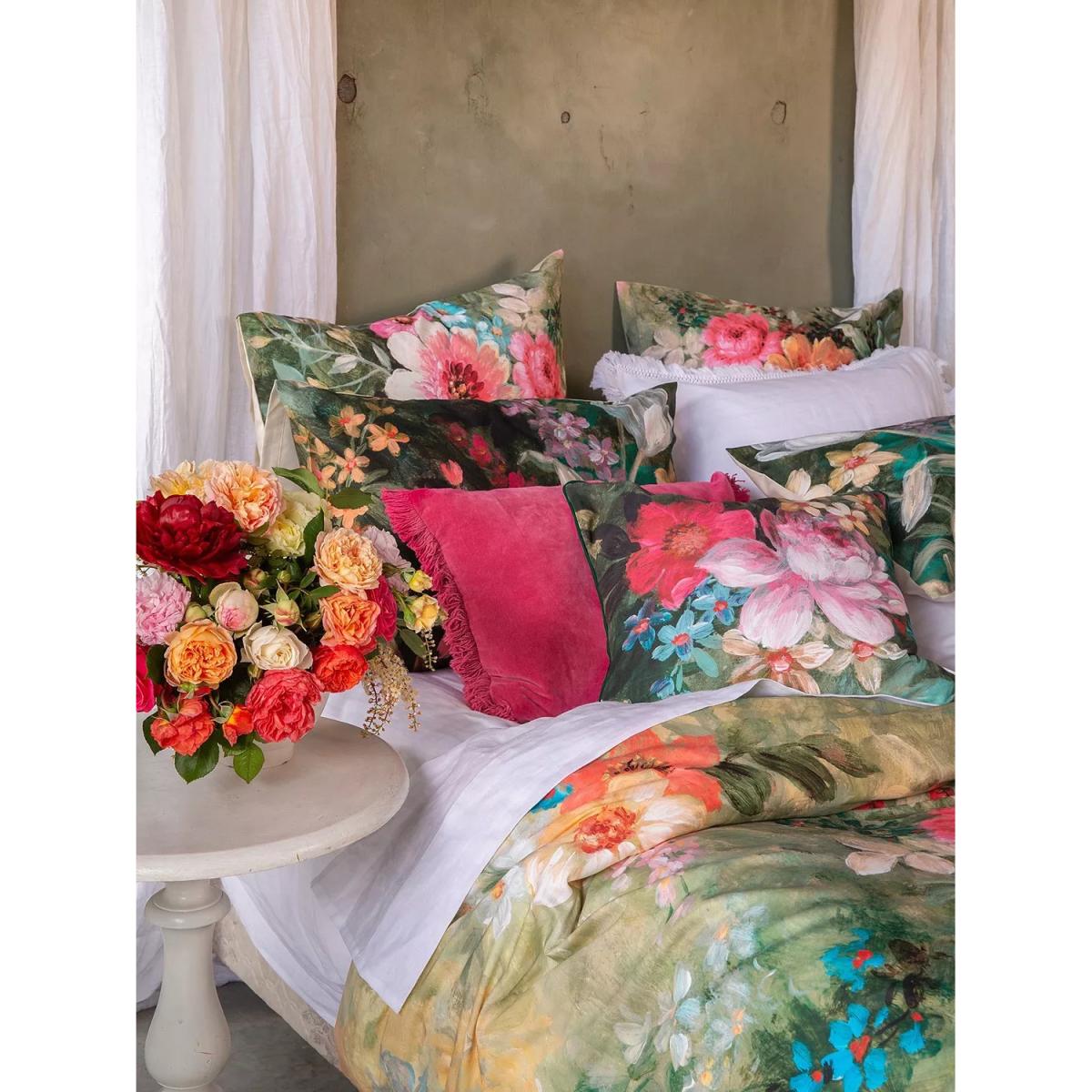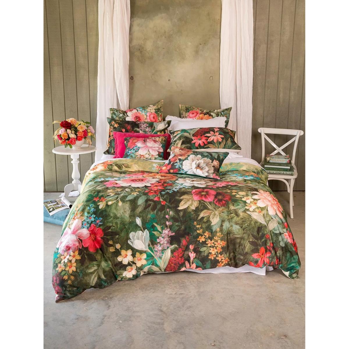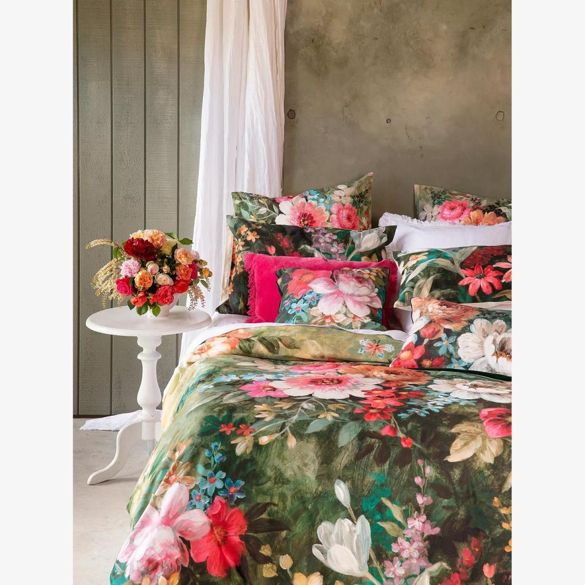 The exuberant and refined beauty of the Venetia design features large clusters of flowers in pink, white and blue. It has a plain ivory-coloured reverse side. This bedding is made from 220 thread count cotton sateen to help keep you cool and comfortable throughout the night. Each set contains 2x standard pillowcases. Have you thought about sheeting? Shop here. Bedding sizes To fit duvet/pillow size (cm) Standard pillowcase, L75 x W50cm Double duvet cover, L200 x W200cm King duvet cover, L220 x W225cm Super king duvet cover, L220 x W260cm