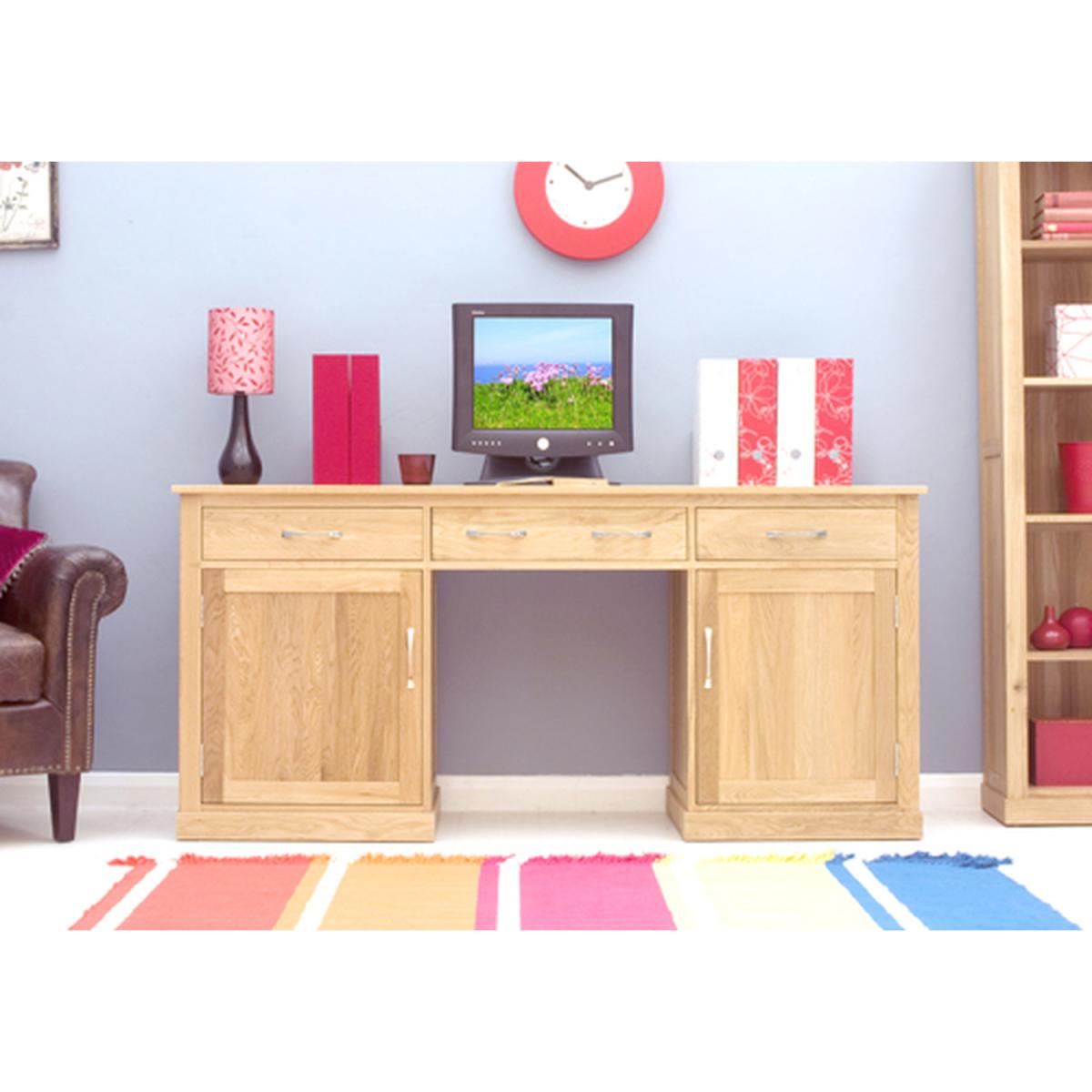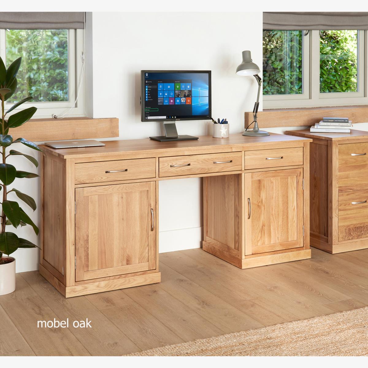 Mobel Oak Large Hidden Office Twin Pedestal Desk - Light Oak
