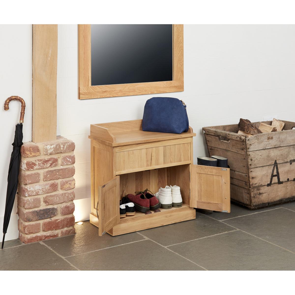 Mobel Oak Shoe Bench with Hidden Storage - Light Oak