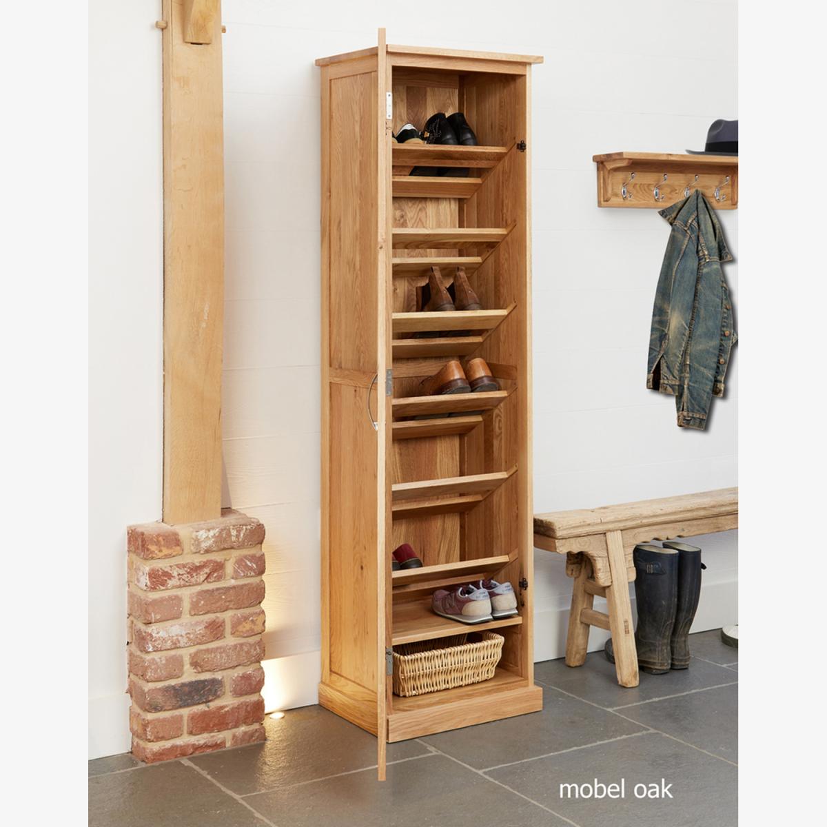 Mobel Oak Tall Shoe Cupboard - Light Oak