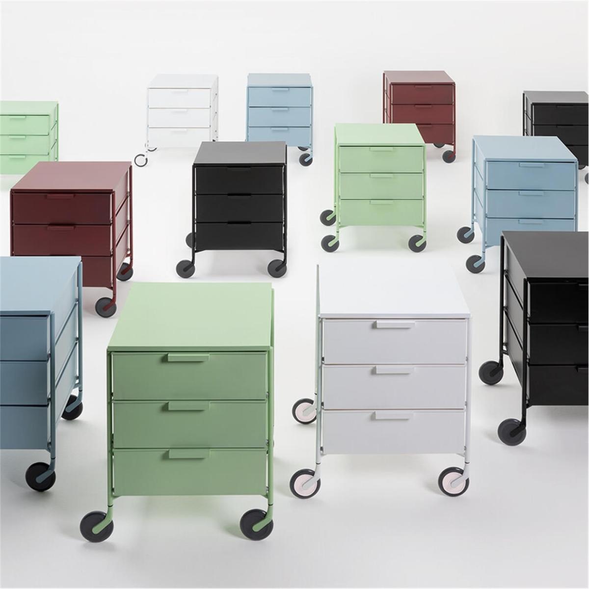 Be more modern in the home with this Mobil Mat chest of drawers from Kartell. Available in a selection of chic mat shades, this unit has three drawers made from steel inside a recycled thermoplastic technopolymer frame on wheels, it’s a must-have office accessory or contemporary storage option.