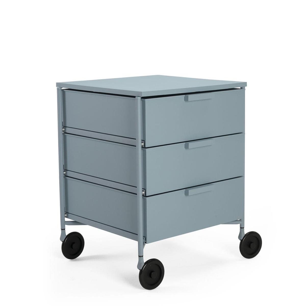 Iconic Kartell products appear in a new light with an original matt finish, elegant and trendy. Soft to the touch, the matt and satin surfaces give these great classics a contemporary, refined dimension. Winner of the 1994 Compasso d'Oro, the Mobil wheeled cabinet has become a classic in the Kartell catalogue. This smart piece of furniture combines lightness, mobility, functionality, resistance and durability all in one. It’s made of recycled plastic material with a painted aluminium structure. Mobil can fit into any room in the house: office, kitchen, bathroom, bedroom or living room. Extremely versatile, it can, for example, serve as a base for your stereo, just as it can be used to store documents and supplies for your office.