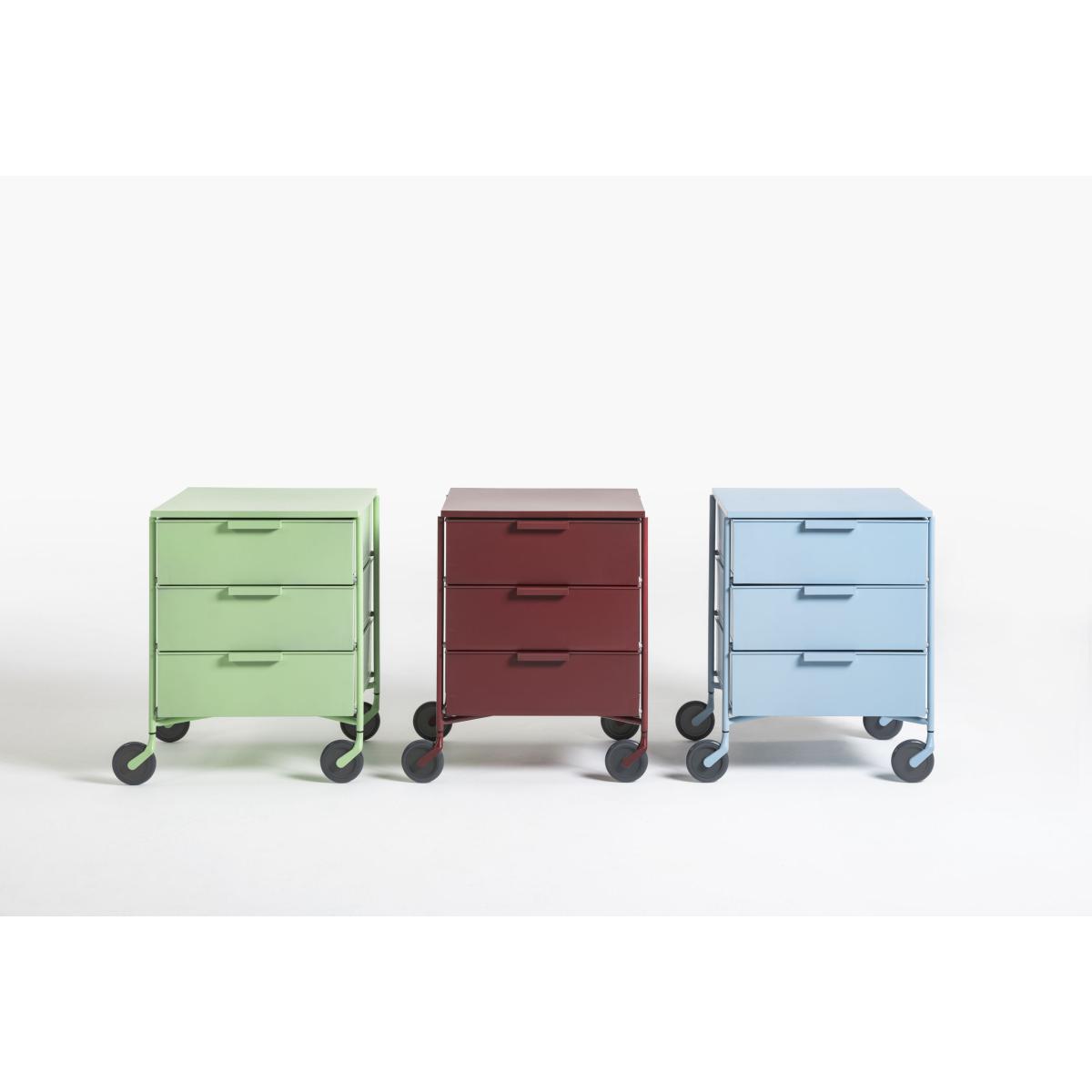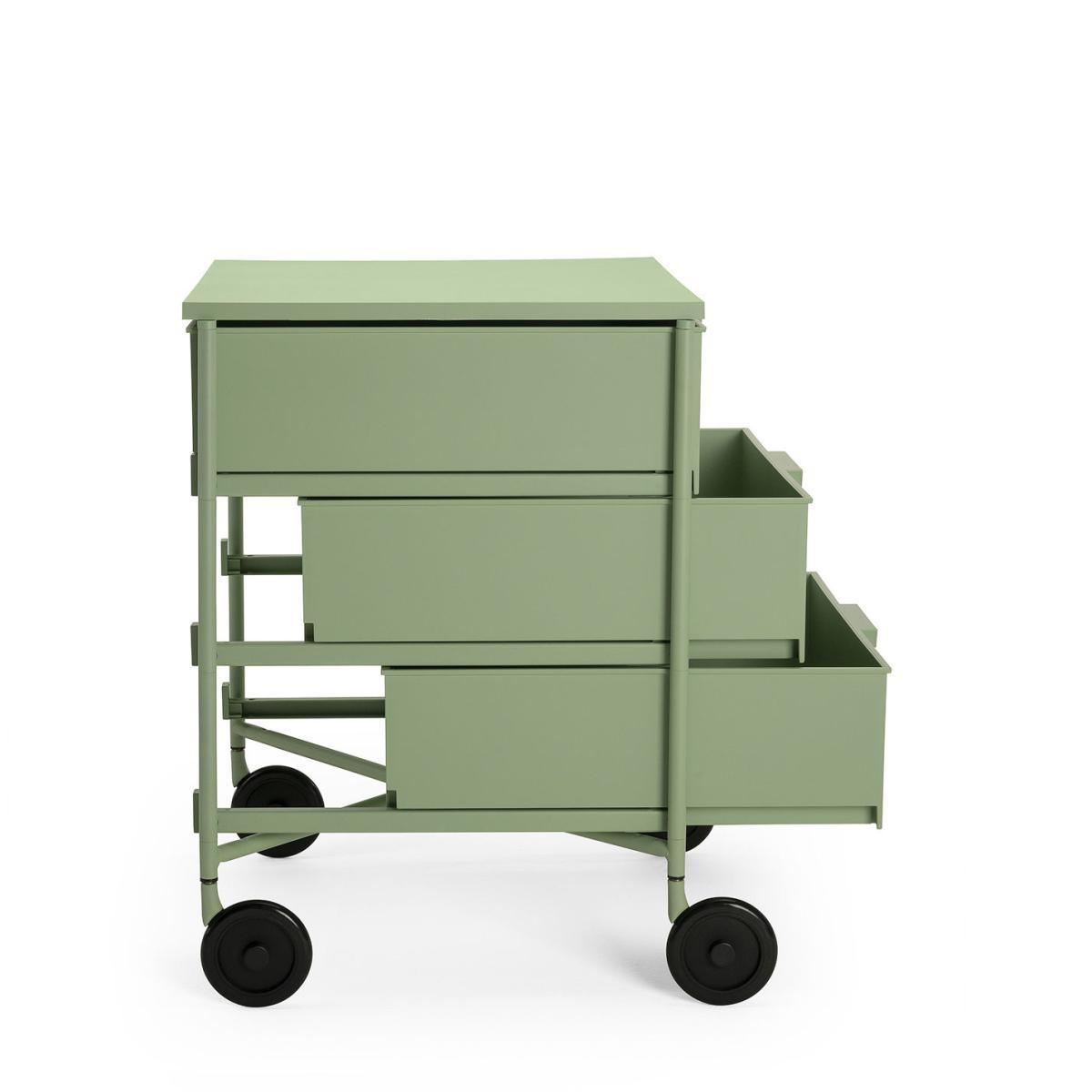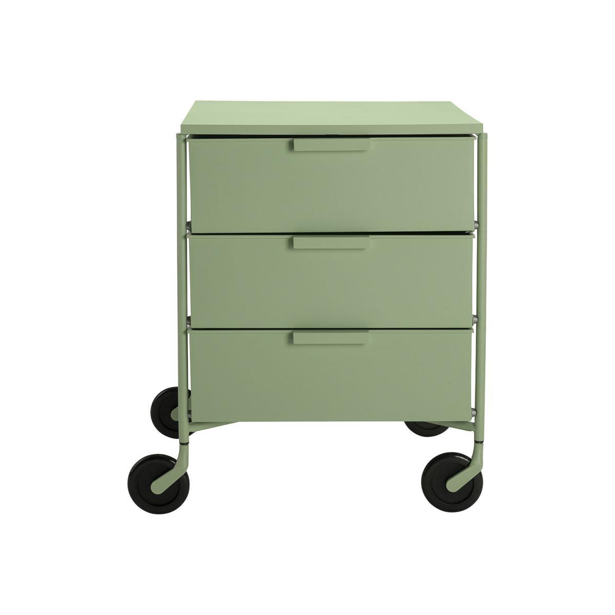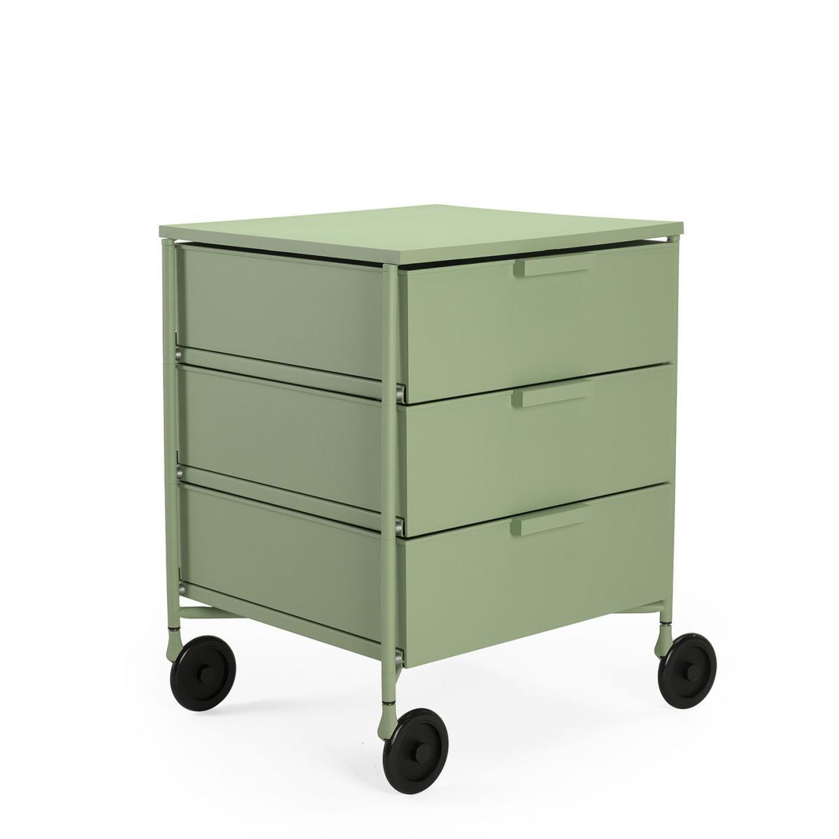 Iconic Kartell products appear in a new light with an original matt finish, elegant and trendy. Soft to the touch, the matt and satin surfaces give these great classics a contemporary, refined dimension. Winner of the 1994 Compasso d'Oro, the Mobil wheeled cabinet has become a classic in the Kartell catalogue. This smart piece of furniture combines lightness, mobility, functionality, resistance and durability all in one. It’s made of recycled plastic material with a painted aluminium structure. Mobil can fit into any room in the house: office, kitchen, bathroom, bedroom or living room. Extremely versatile, it can, for example, serve as a base for your stereo, just as it can be used to store documents and supplies for your office.