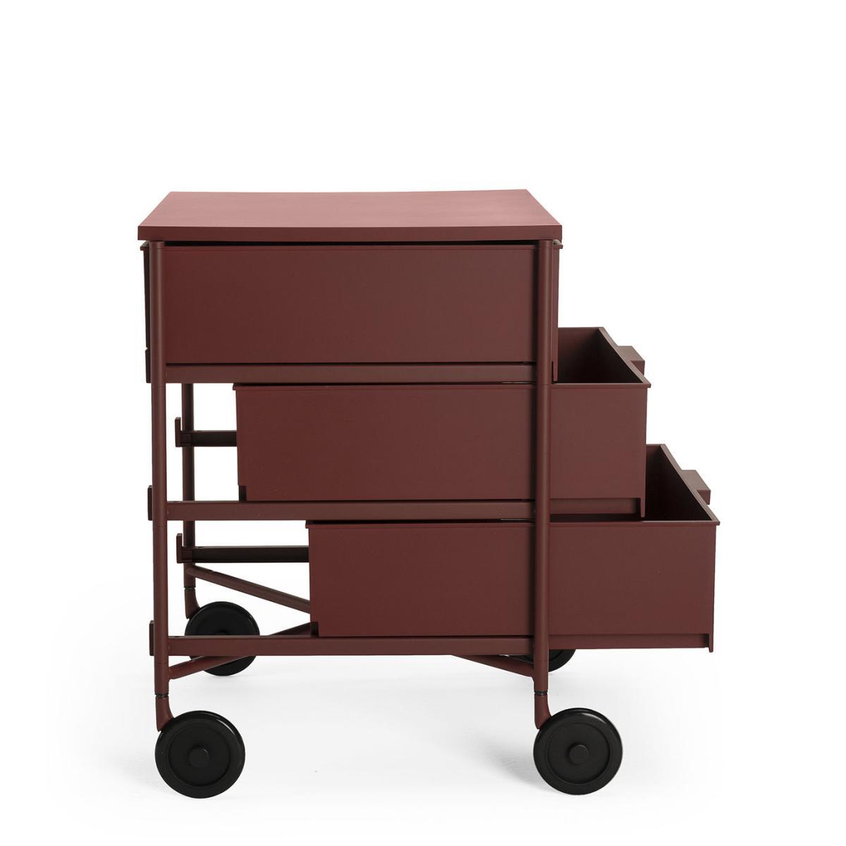 Iconic Kartell products appear in a new light with an original matt finish, elegant and trendy. Soft to the touch, the matt and satin surfaces give these great classics a contemporary, refined dimension. Winner of the 1994 Compasso d'Oro, the Mobil wheeled cabinet has become a classic in the Kartell catalogue. This smart piece of furniture combines lightness, mobility, functionality, resistance and durability all in one. It’s made of recycled plastic material with a painted aluminium structure. Mobil can fit into any room in the house: office, kitchen, bathroom, bedroom or living room. Extremely versatile, it can, for example, serve as a base for your stereo, just as it can be used to store documents and supplies for your office.