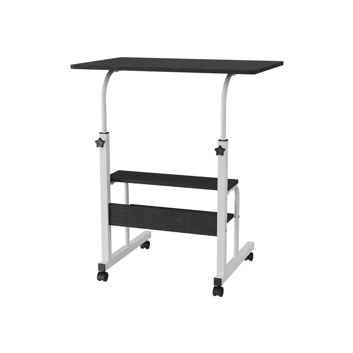 Bring comfort and convenience with our versatile mobile overbed table. Perfect as a laptop stand or study desk, it offers flexibility for work or leisure. The tabletop provides a smooth surface for writing or using a laptop, while the two tier open shelving below offers easy access to books magazines and other essentials helping you stay organised. Smooth rolling wheels allow effortless movement, while the locking mechanism keeps the table steady when needed. The compact design makes it ideal for bedrooms living rooms or student accommodation saving valuable space. With a simple modern style it blends with any decor. Work relax or browse in comfort wherever you choose.