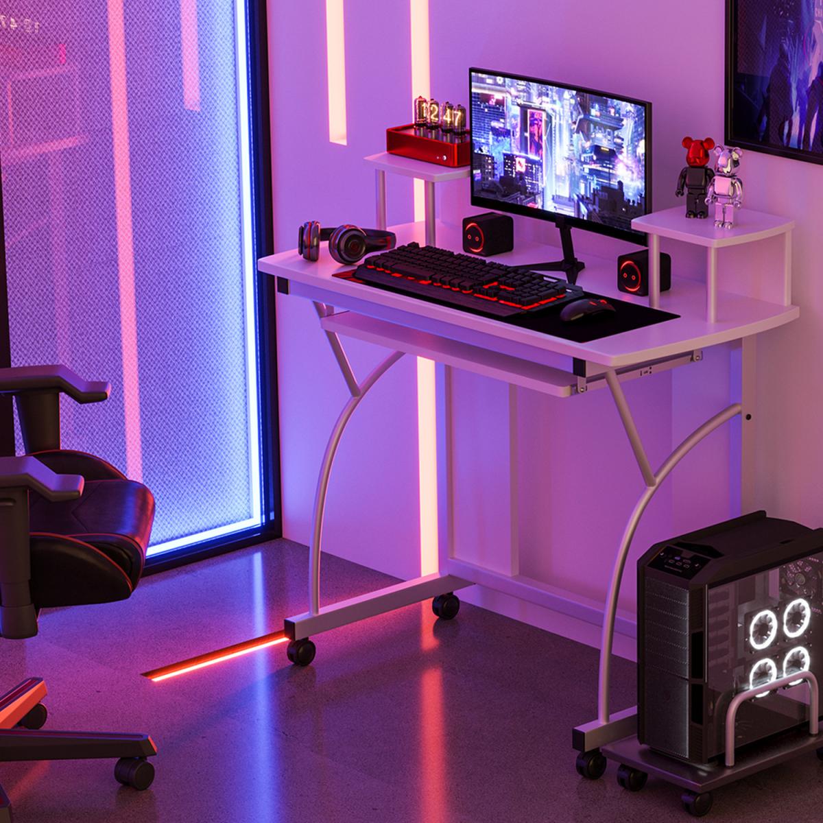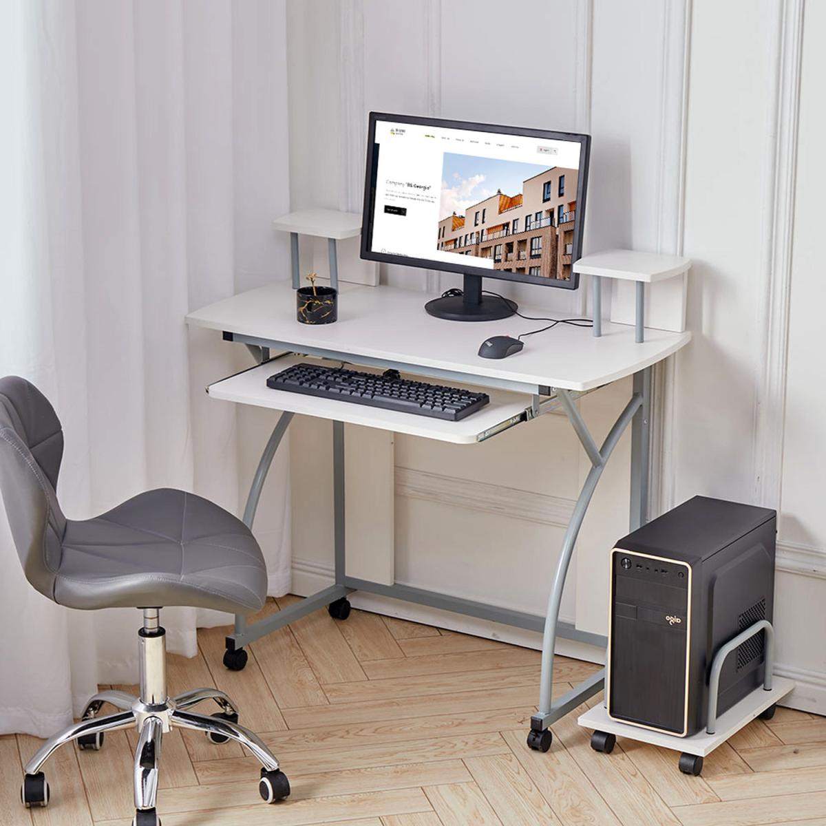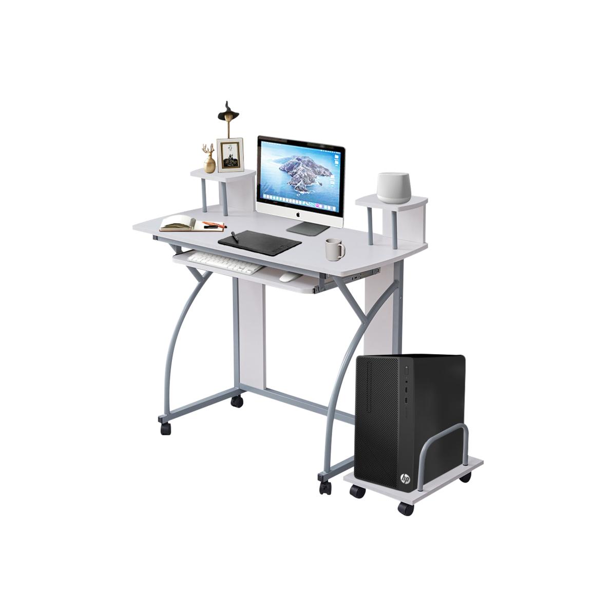 Compact size with a portable & height design, perfect for small space and you can deal with your computer, laptop, printer, books and others. You could use this computer workstation as a portable presentation lectern, mobile standing computer desk, laptop desk or office table. This mobile computer desk can also be used in the living room, study room, or bedroom. The 360 degree rotation wheels make it easy to slip even on carpet and the brake help you stop anywhere you want.