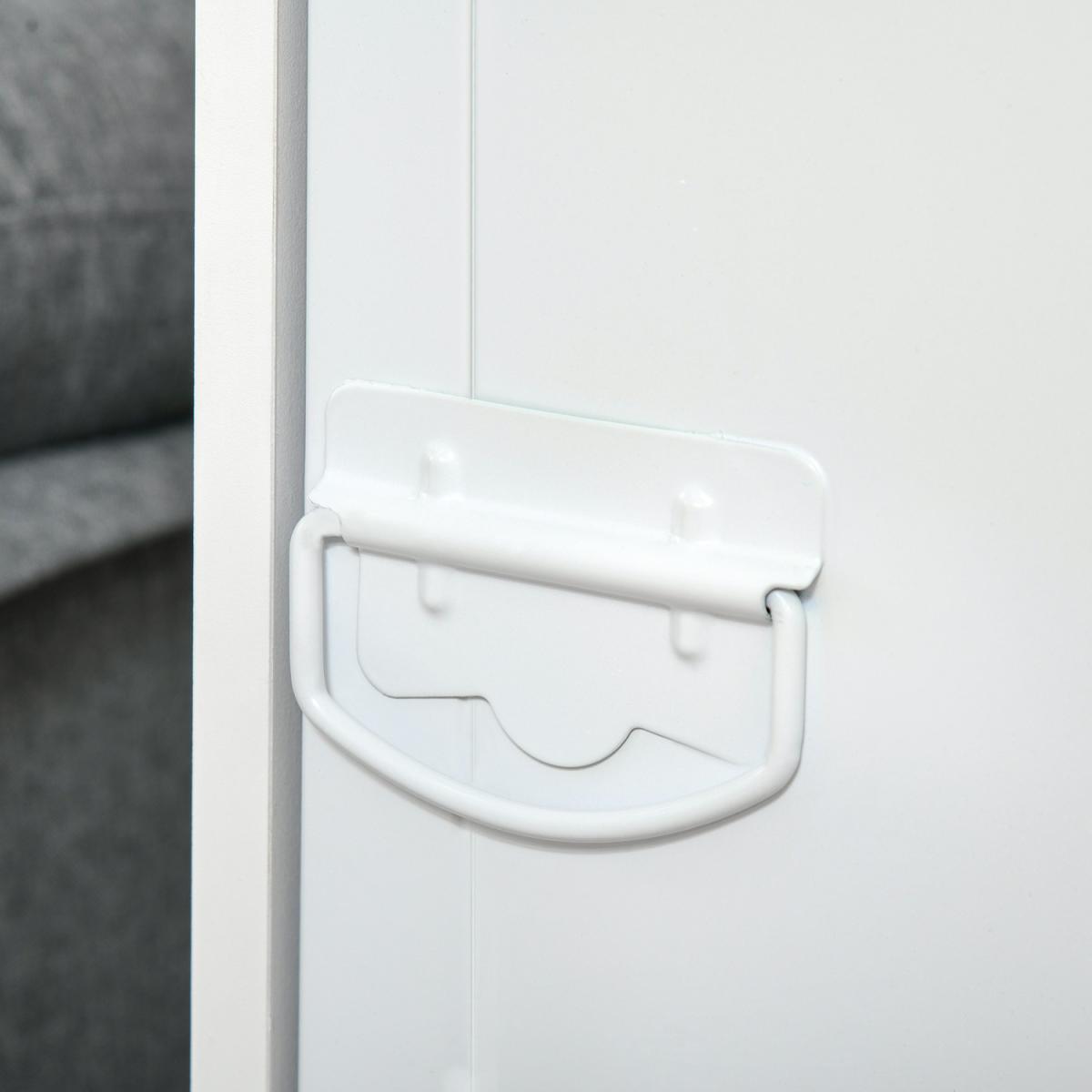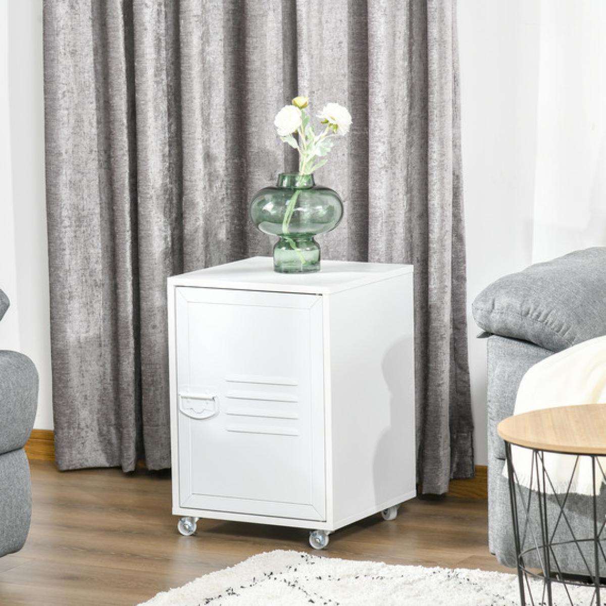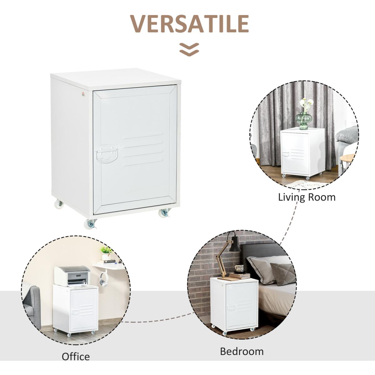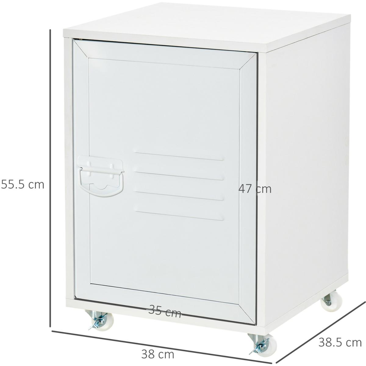 Covered with a louvered metal door to keep items out of sight as well as maintain ventilation. Works perfectly as a file cabinet, bedside table, and printer stand. Magnetic door catch and metal handle are designed for easy open and close. Swivel casters and compact size ensure easy movement.