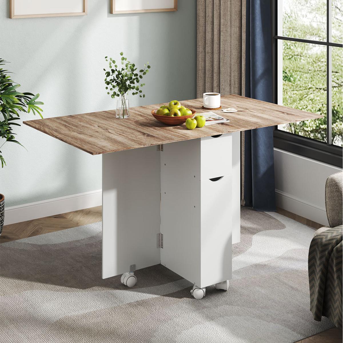 Mobile Foldable Dining Table with Dual Drawers - Oak