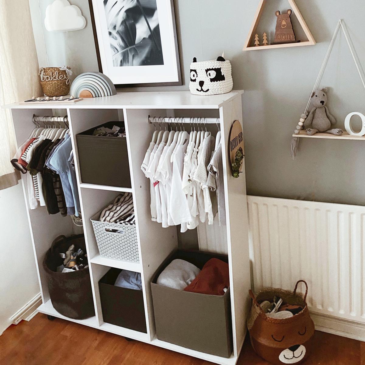 I really like this open wardrobe organiser for its practicality and versatility. It’s perfect for creating a tidy, accessible storage solution in bedrooms or dressing areas, especially in smaller spaces where every inch counts. Its clean white finish works well with a variety of interiors, from scandi minimalism to more playful or eclectic styles. For styling tips, consider using baskets or labelled boxes on the shelves to keep smaller items organised, and hang delicate or frequently worn pieces on the rail for easy access. It’s ideal for those who want a functional, neat look without sacrificing style, and can be easily moved or adapted as your storage needs change.