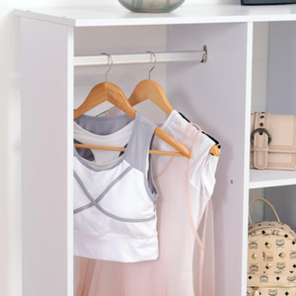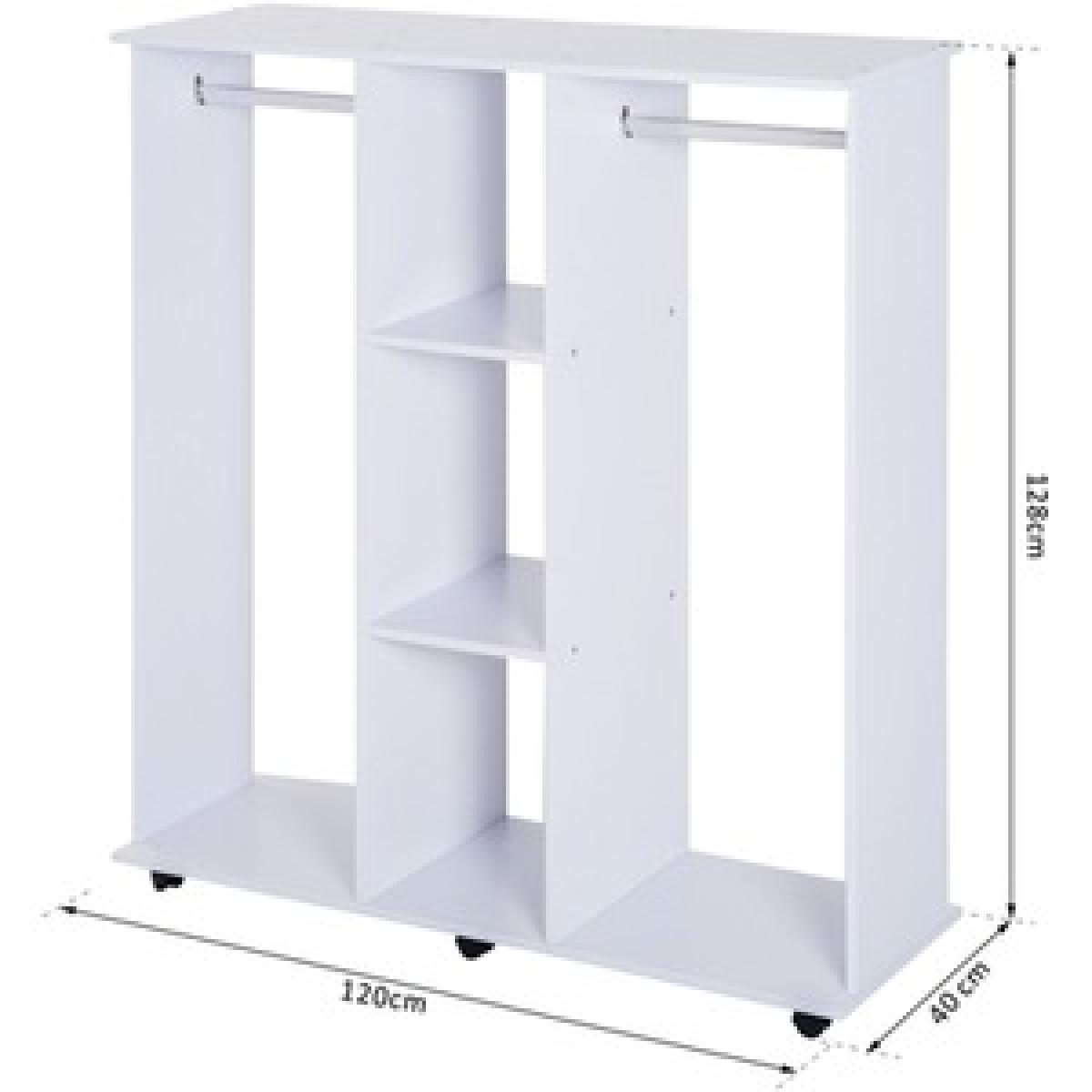 This Mobile Open wardrobe from HOMCOM is an ideal solution for your clothes storage. Designed to keep your clothes organised neatly on the 3-tier cube in the centre and the two hanging rails on either side. It can also be moved around if required on 6 wheels where 2 can be locked for stability. With its modern styling, it is a great item to have to match any room decor in your home.
