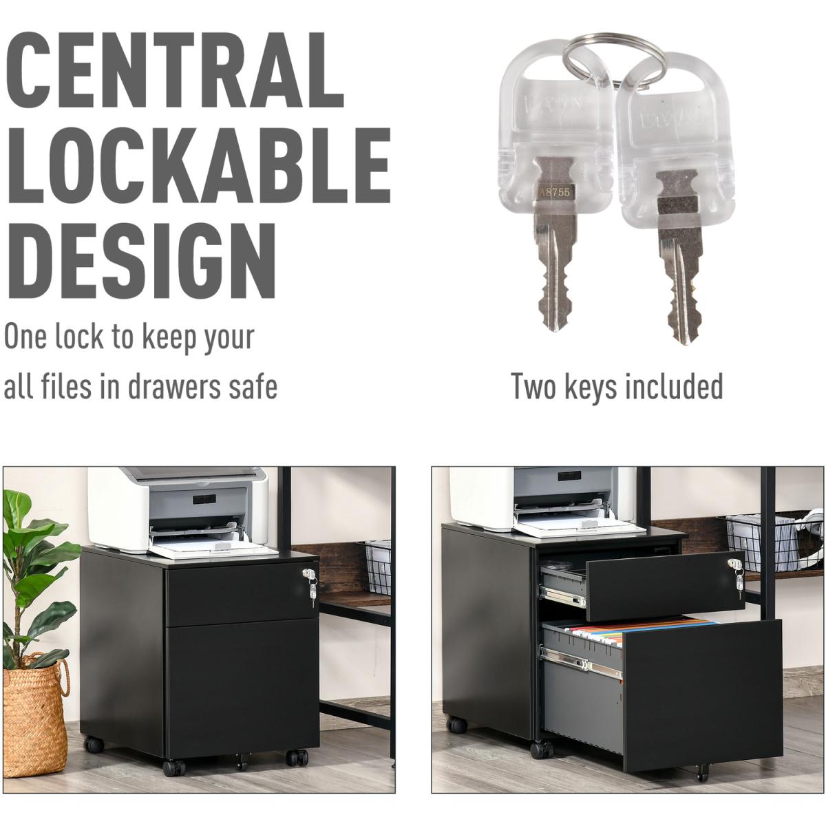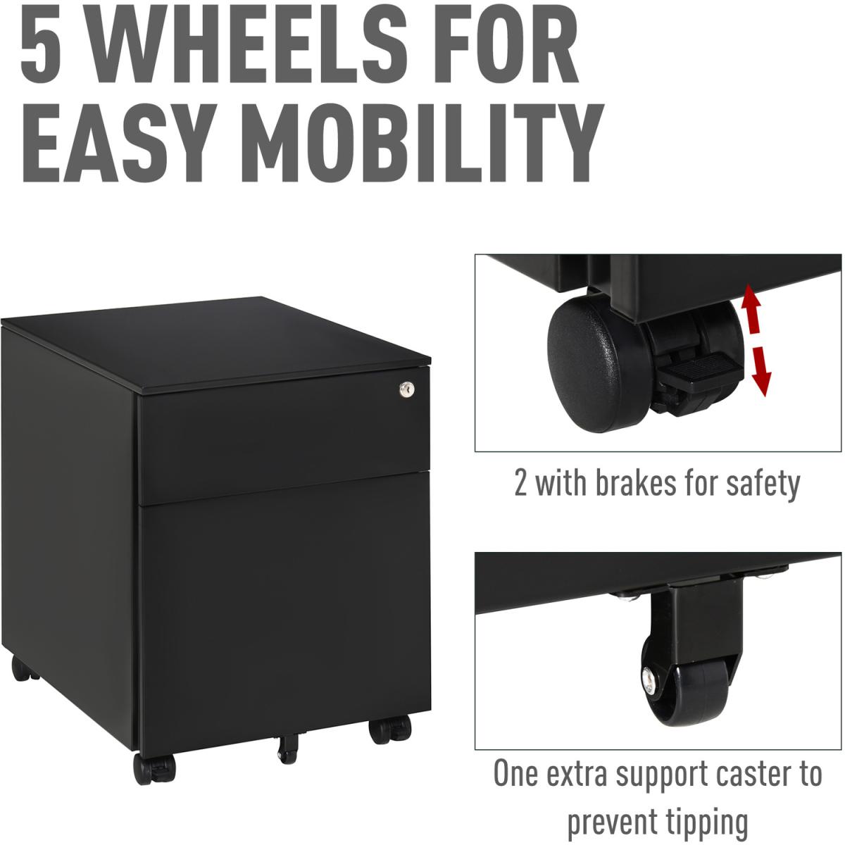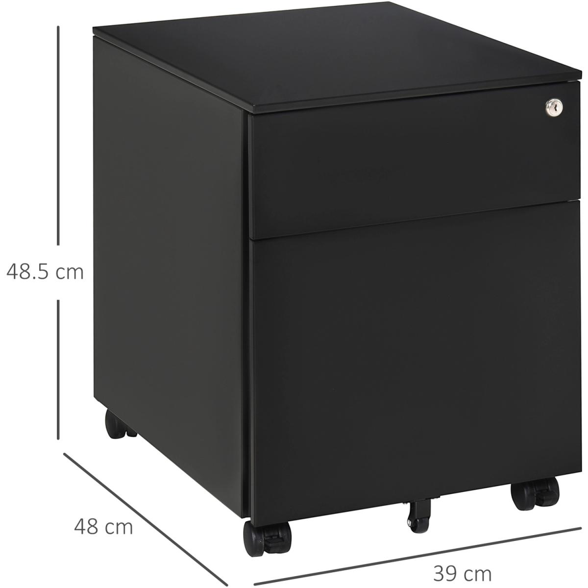 Mobile Steel File Cabinet with Pencil Tray - Black