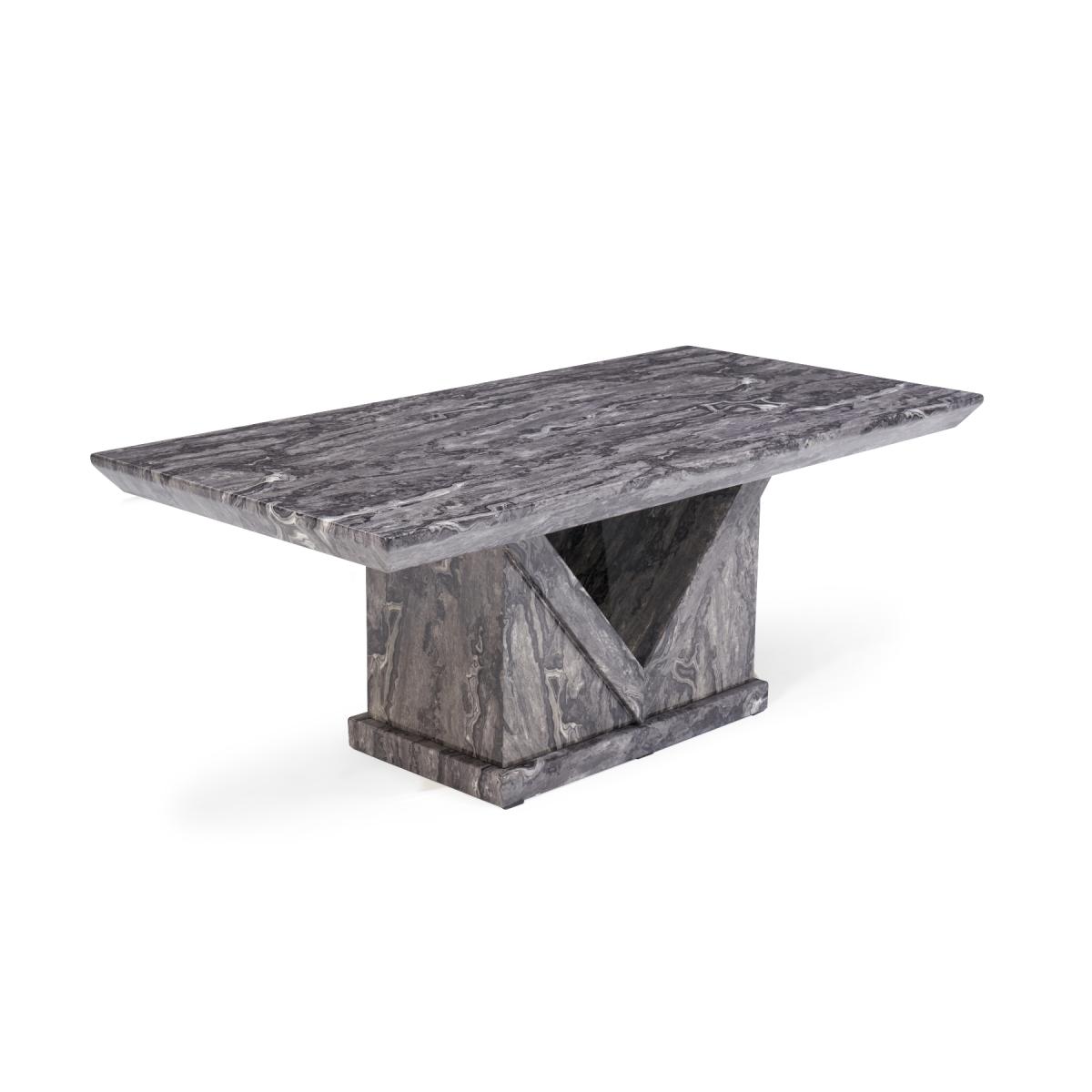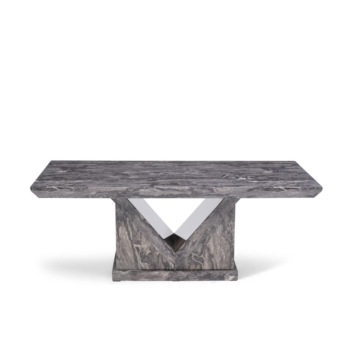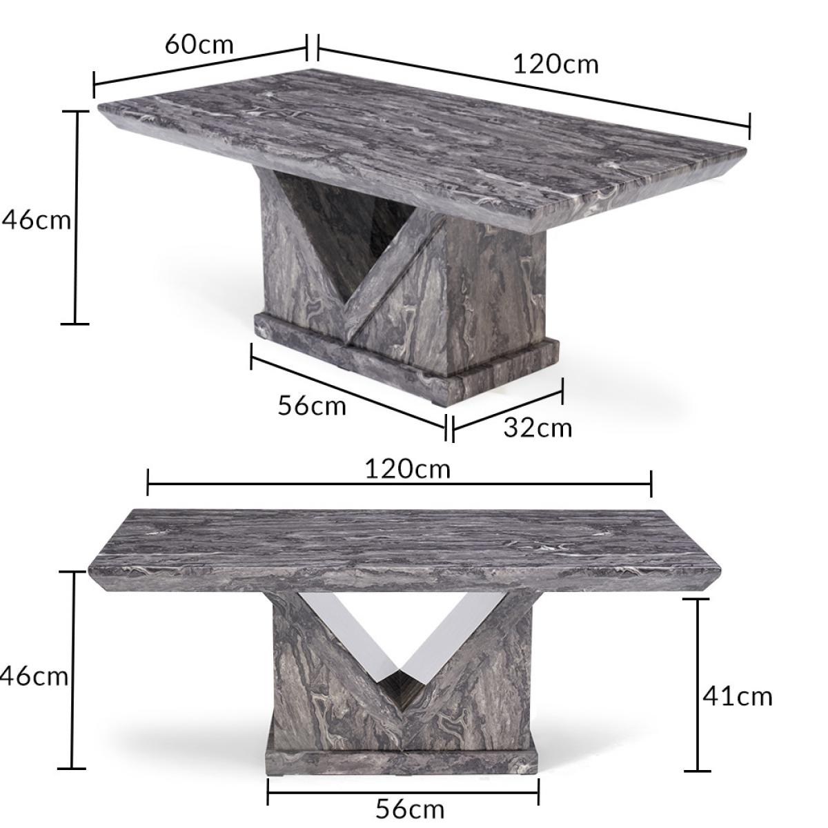 A stunning fusion of bold contemporary style and everyday practicality, the Mocha Grey Marble Coffee Table is a stylish addition to any interior. Instantly updating any space, the grey marble coffee table features a unique modern design that really makes a statement. Hard wearing grey marble lamp table. Beautifully designed with a thick surface for a unique look. Unique V pedestal base design giving great stabilityUV resistant. Heat resistant up to 50 degrees Celsius Additional Measurements:Table Top Thickness: 5cm. Base Width: 56cm. Base Depth: 32cm. Height to Underside of Table Top: 41cm