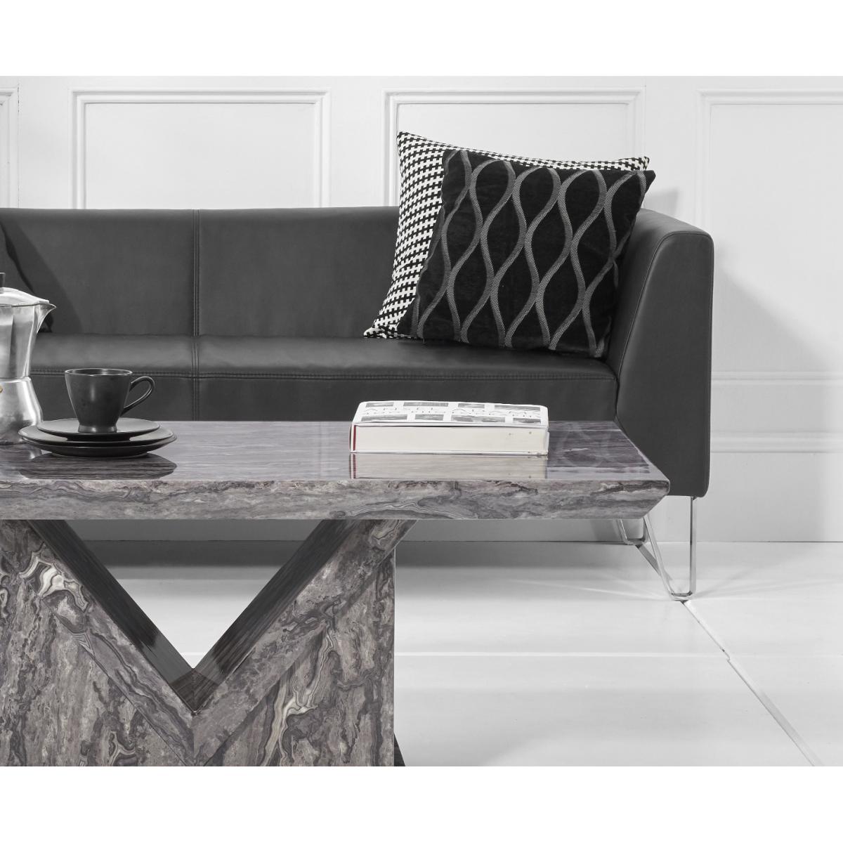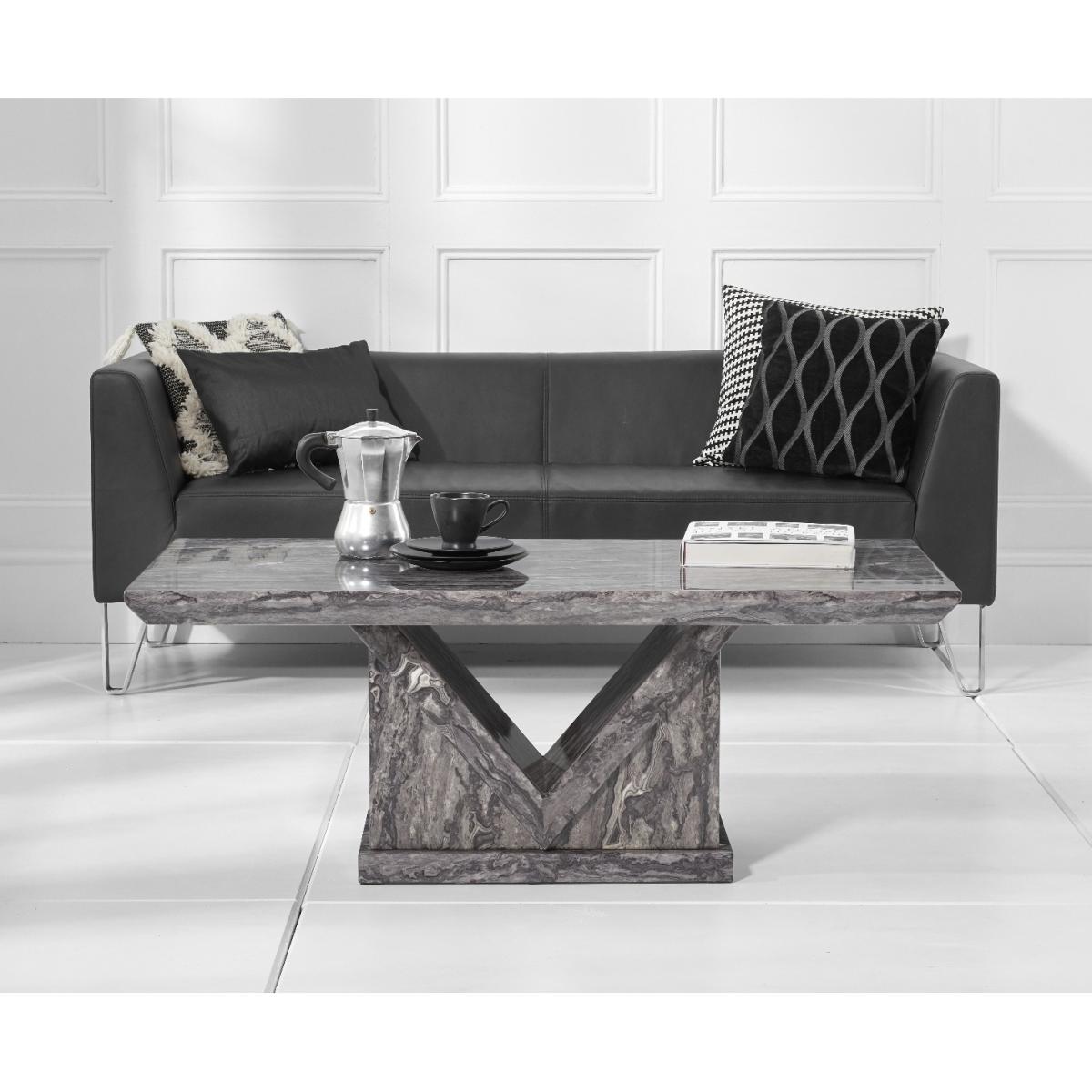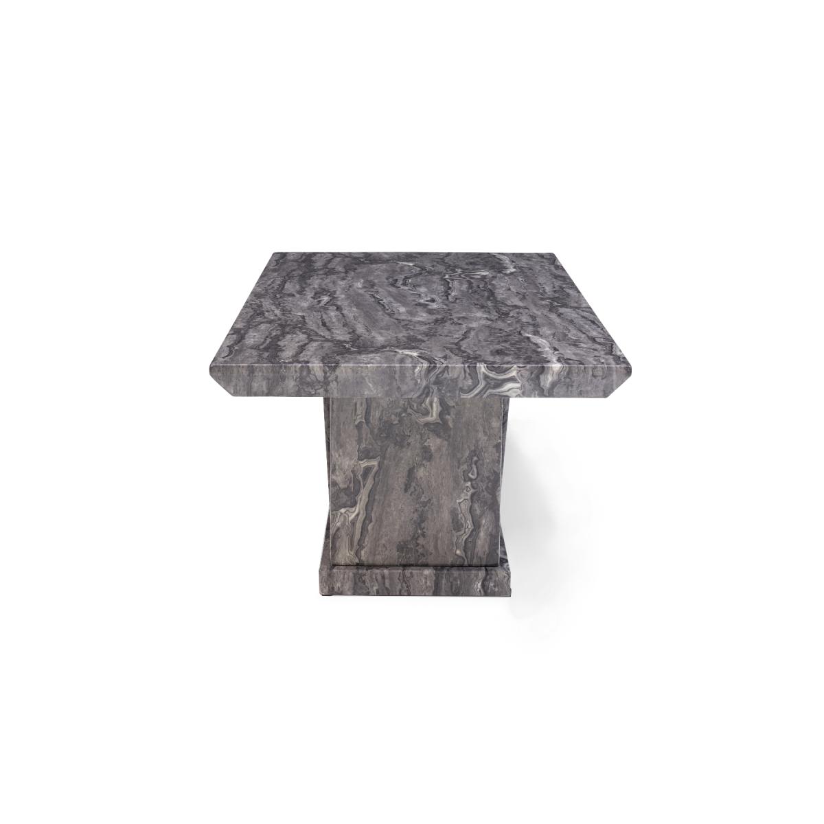 A stunning fusion of bold contemporary style and everyday practicality, the Mocha Grey Marble Coffee Table is a stylish addition to any interior. Instantly updating any space, the grey marble coffee table features a unique modern design that really makes a statement. Hard wearing grey marble lamp table. Beautifully designed with a thick surface for a unique look. Unique V pedestal base design giving great stabilityUV resistant. Heat resistant up to 50 degrees Celsius Additional Measurements:Table Top Thickness: 5cm. Base Width: 56cm. Base Depth: 32cm. Height to Underside of Table Top: 41cm