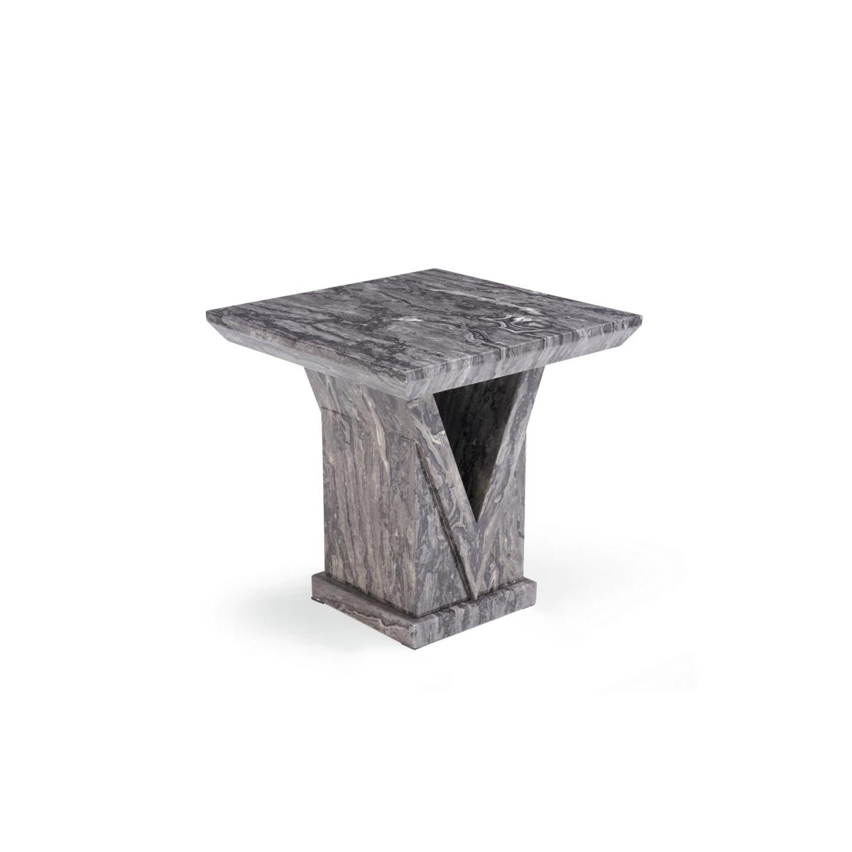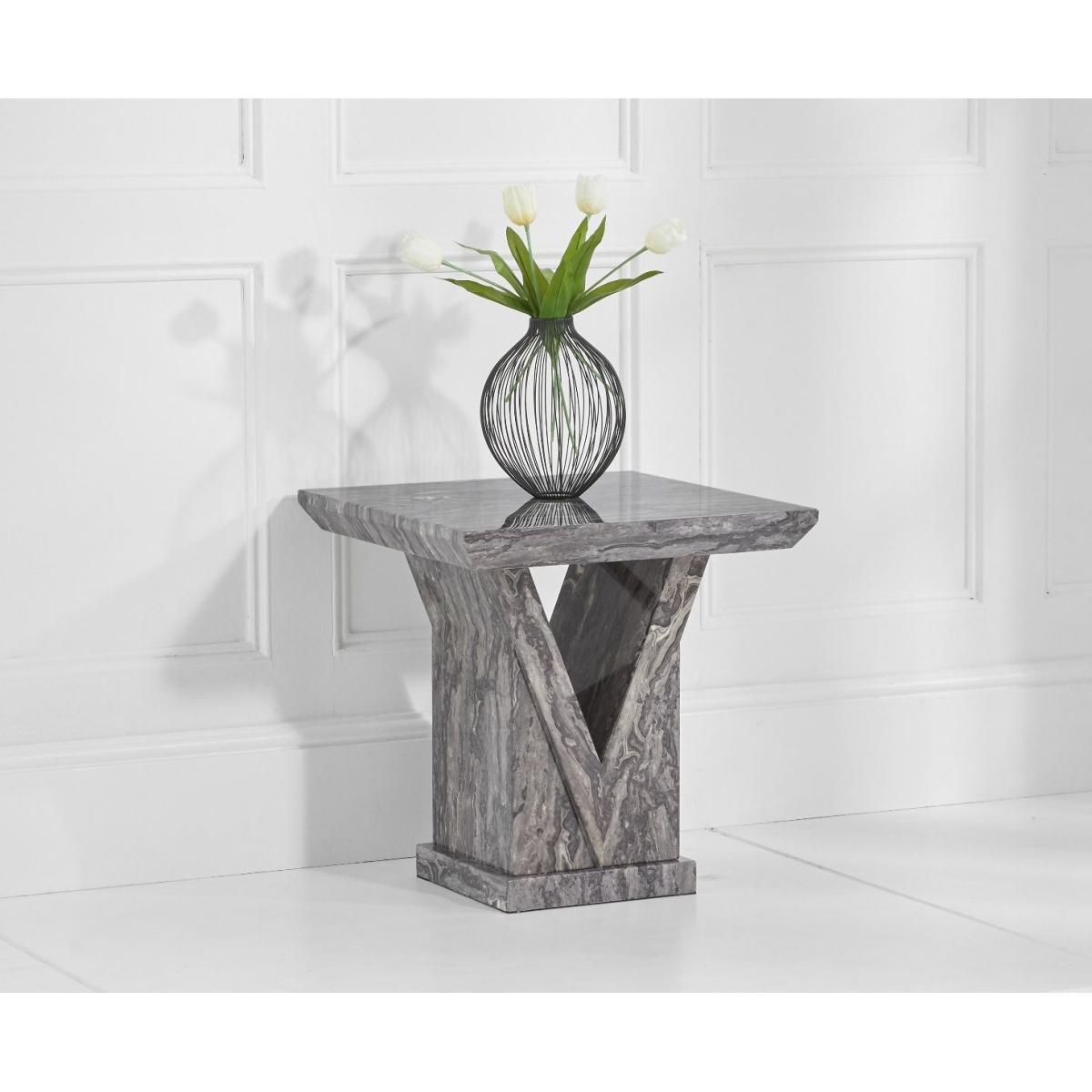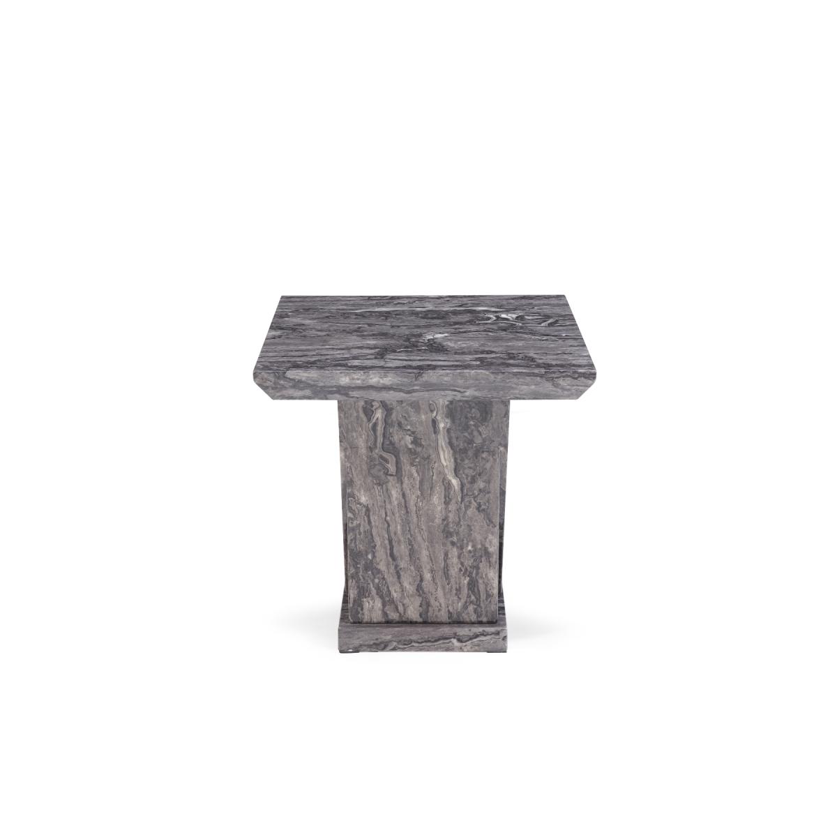 A stunning fusion of bold contemporary style and everyday practicality, the Mocha Grey Marble Side Table is a chic addition to any interior. Instantly updating any space, the grey marble side table features a unique modern design that makes a statement. Hard wearing grey marble side table or lamp table. Beautifully designed with a thick surface for a unique look. Unique V pedestal base design giving great stabilityUV resistant. Heat resistant up to 50 degrees Celsius Additional Measurements:Table Top Thickness: 5cm. Pedestal Width: 30cm. Pedestal Depth: 30cm. Height to Underside of Table Top: 50cm