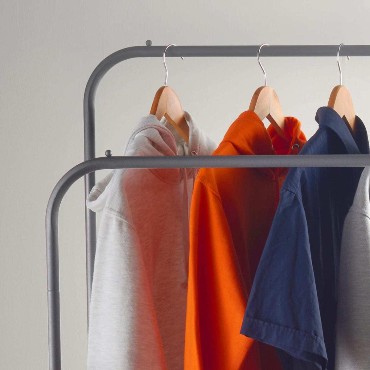 This clothing rail is ideal for the busy home, offering a convenient yet stylish way to store clothing. Miniature by design, heavy duty construction makes it ideal for heavy jackets and coats, with the sleek design making it perfect if you are in a rush. Just slide you garment across the rail and the built in stoppers will keep them secure while you find the perfect outfit. Duals rails provide over 2 metres of storage space, allowing for greater versatility and options when choosing outfits. A built in shoe rack offers convenience, keeping your shoes off of the floor in an easy to find place, whilst offering an all round storage solution, with additional space for storage boxes. This allows you to keep your porch or hall clear of trip hazards, whilst keeping everything exactly where you need it. Handy hooks on either side complete the rail, perfect for hanging hats, scarves and bags. With everything all in one place, you are unlikely to forget anything if you are in a rush.