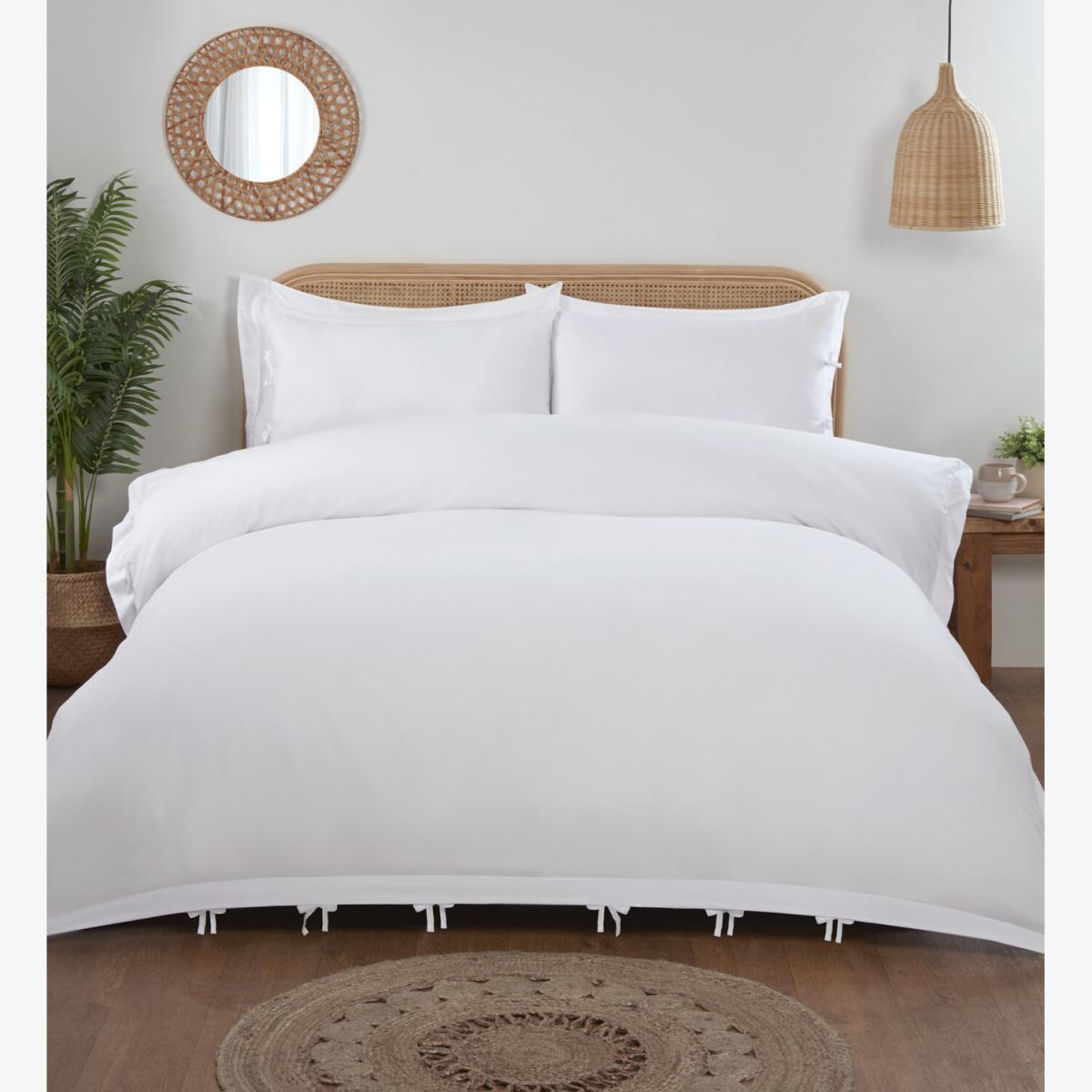 Moda Tied Duvet Cover and Pillowcase Set - White / Single