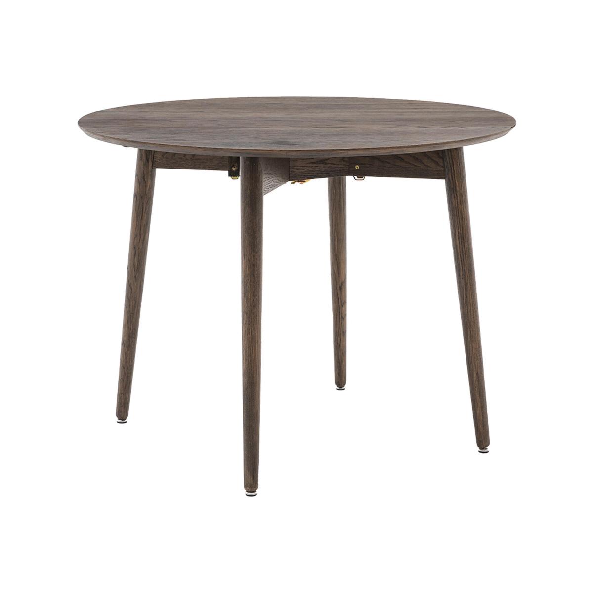 I’m a big fan of this smoked‐wood folding table for its pared-back silhouette and clever space-saving design. The deep, muted finish sits neatly in Scandi-inspired or industrial loft schemes and works well against pale walls or dark feature paint. To style, pair it with slim-legged chairs in black or natural wood and add texture via linen placemats and a simple ceramic bowl in the centre. If you’re short on floor space, fold one leaf down and use the side as a console - top it with a sculptural lamp and a tidy stack of books.