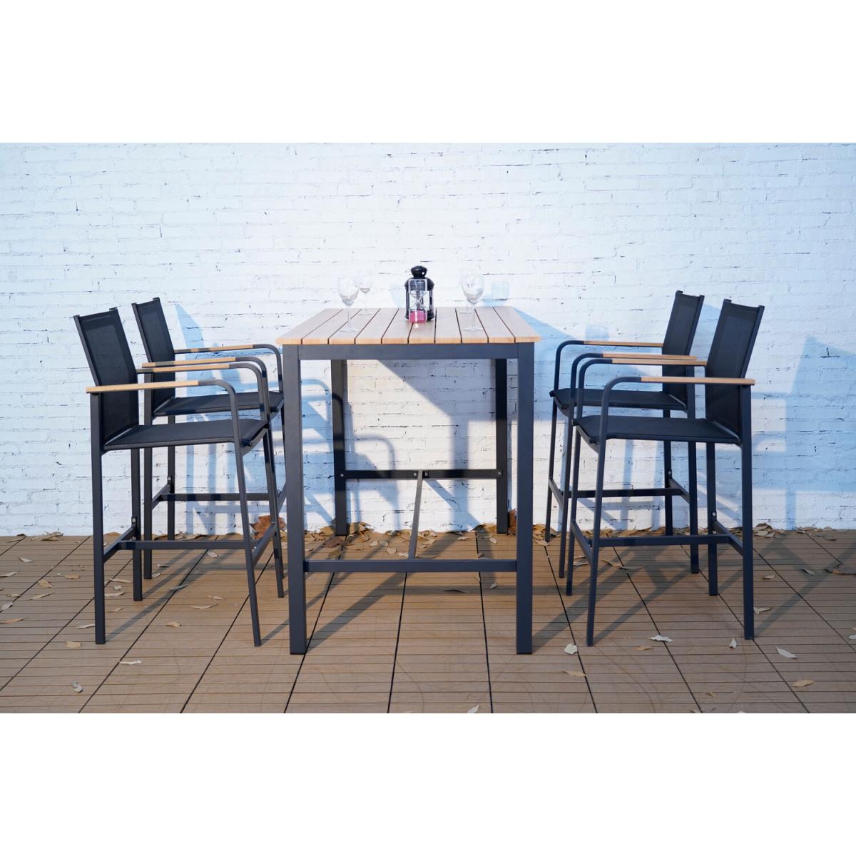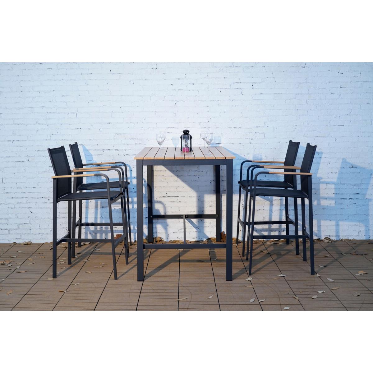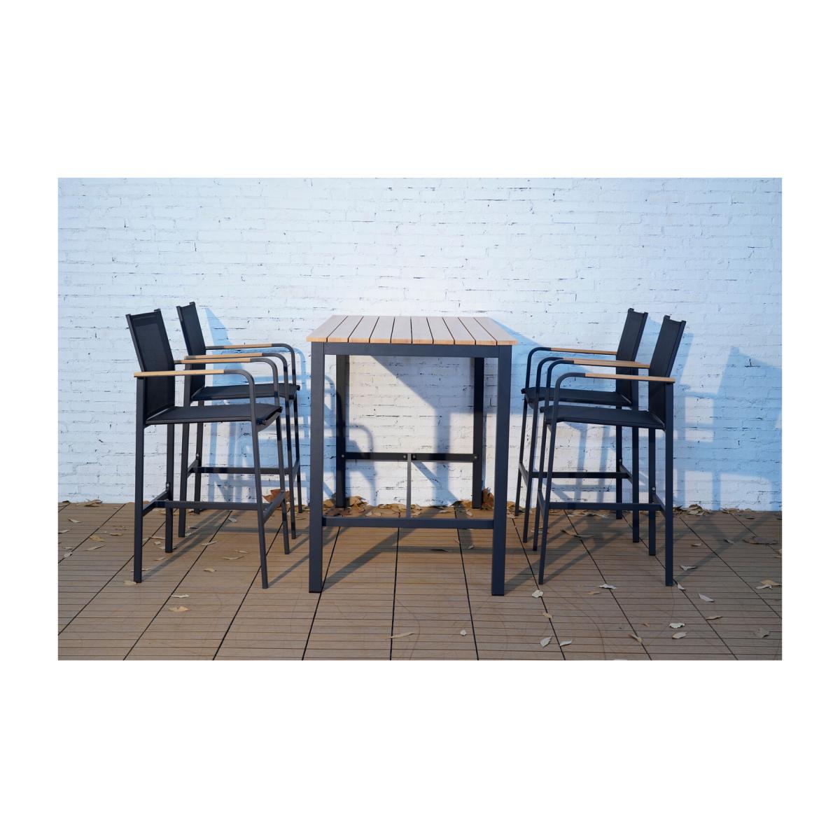 Sit back, relax and enjoy summer in style with this fantastic Modena 5 Piece Bar Set. Its sleek and contemporary design will make it a perfect fit in any garden, patio or decking. The heat transfer table top is ideal for garden parties, BBQs or even for a cosy evening in the garden. The lightweight aluminium frame with a modern black finish will complement your space and add a chic touch to your decor. The stackable chairs with armrests provide ultimate comfort while soaking up the summer sun, making this a must-have addition that is sure to make a statement and impress your guests.