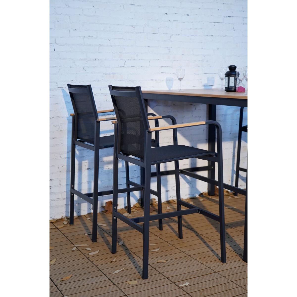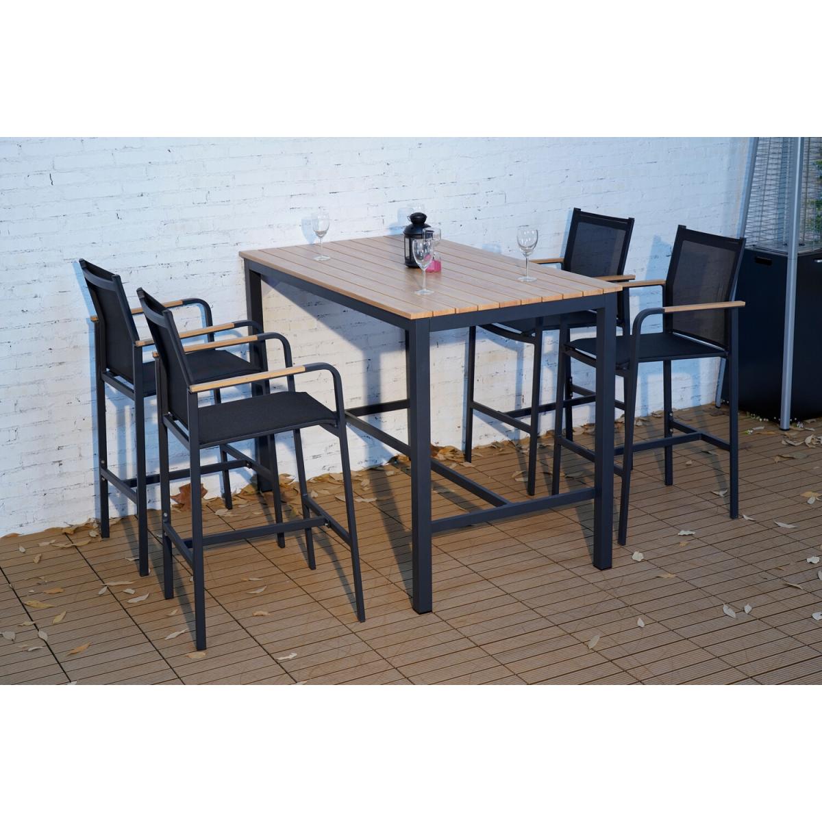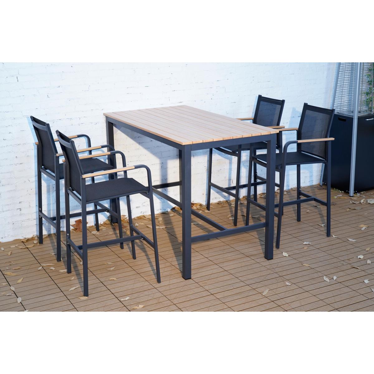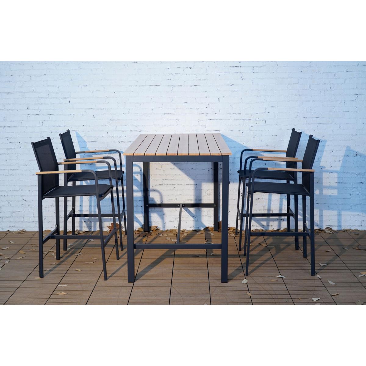 Sit back, relax and enjoy summer in style with this fantastic Modena 5 Piece Bar Set. Its sleek and contemporary design will make it a perfect fit in any garden, patio or decking. The heat transfer table top is ideal for garden parties, BBQs or even for a cosy evening in the garden. The lightweight aluminium frame with a modern black finish will complement your space and add a chic touch to your decor. The stackable chairs with armrests provide ultimate comfort while soaking up the summer sun, making this a must-have addition that is sure to make a statement and impress your guests.