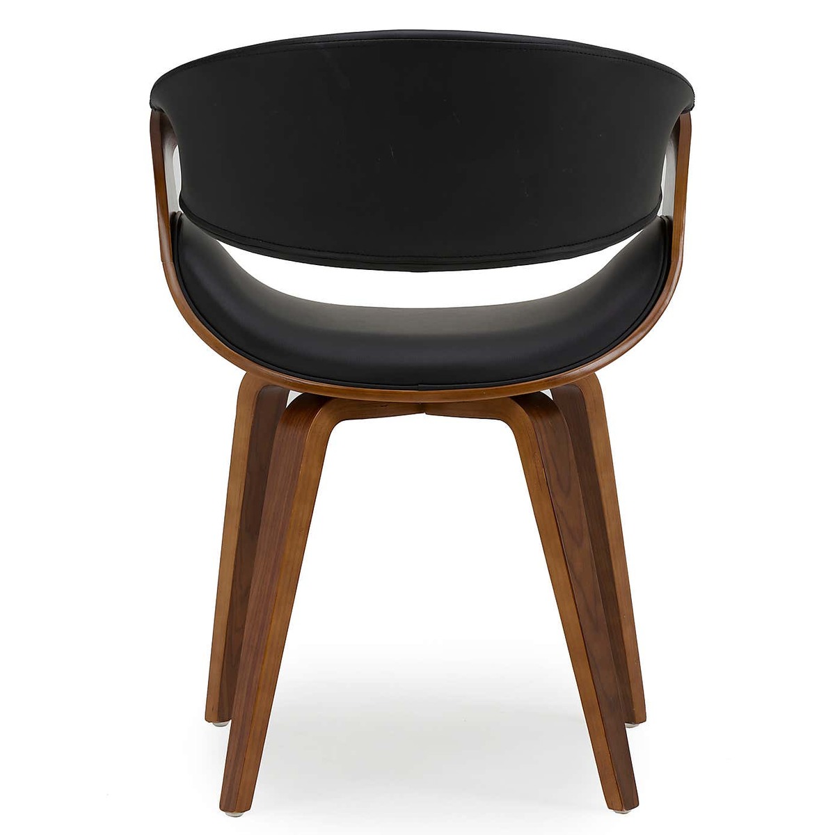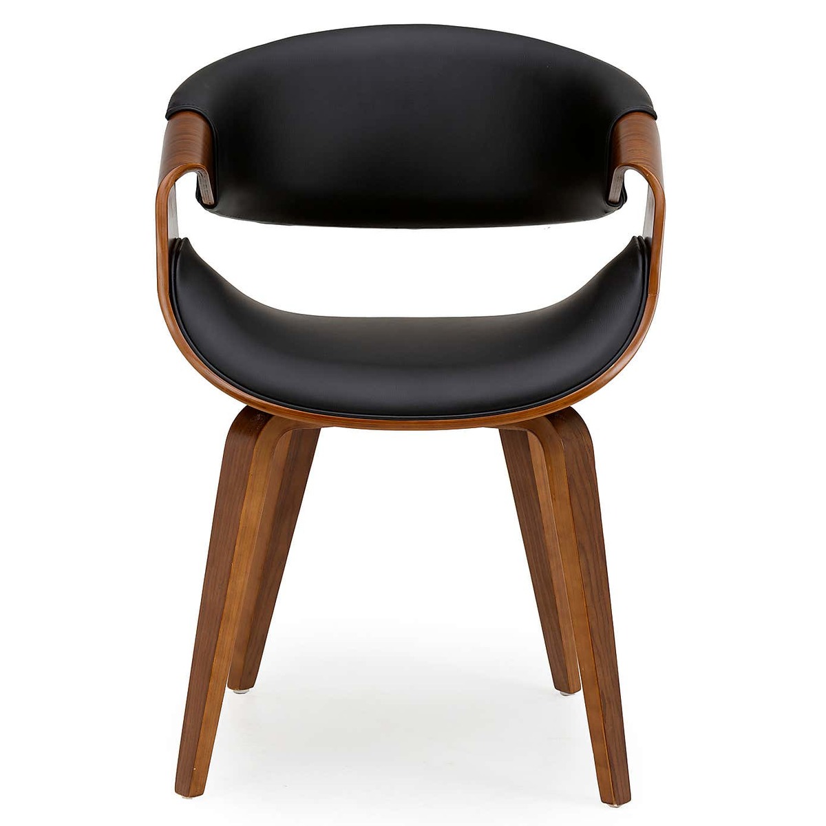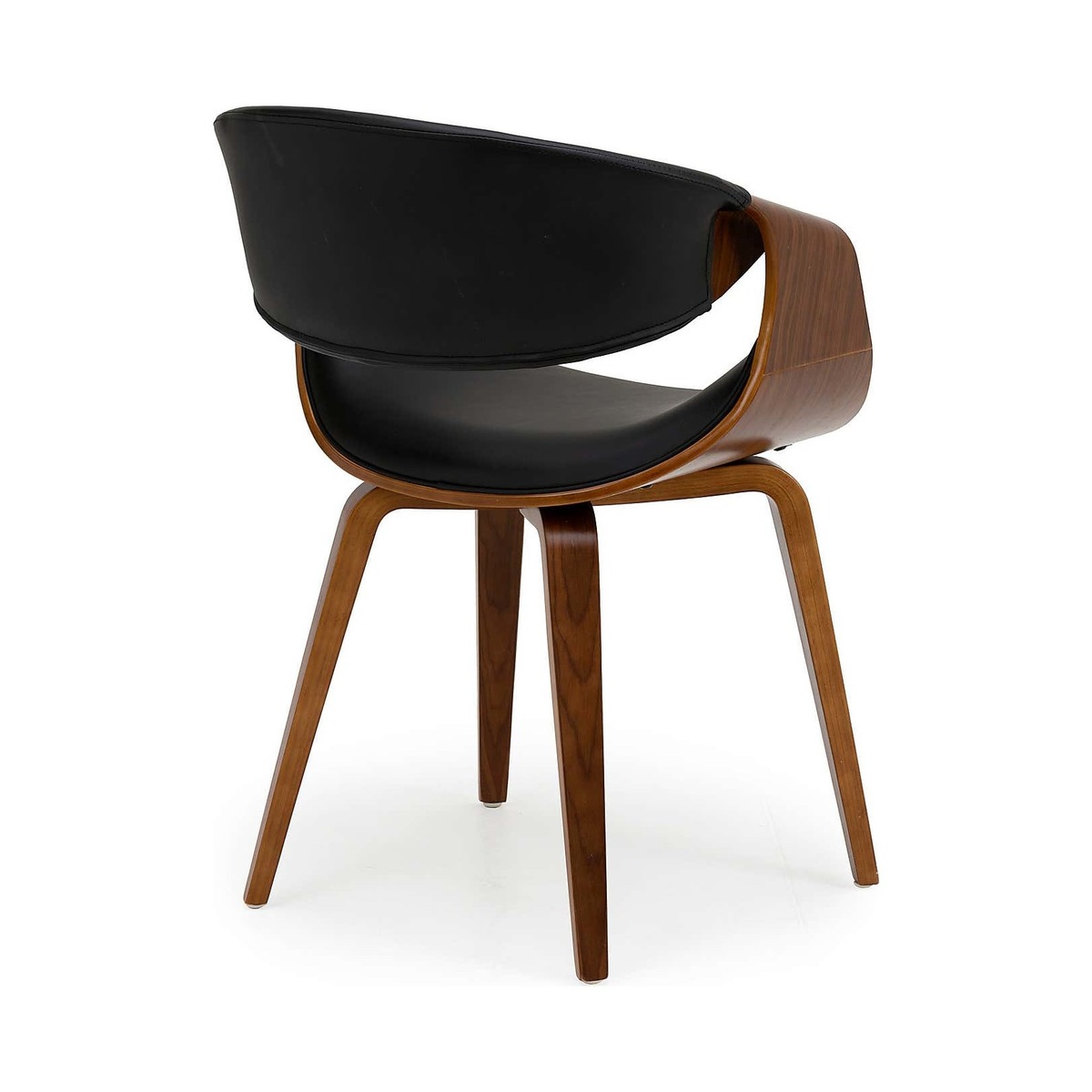 Dunelm Exclusive - Designed and Developed by Dunelm With its modern, retro inspired design, the Modena chair features a foam-filled, black faux leather seat and backrest, complemented by a varnished beech wood finish. This easily assembled chair features a stylish folded backrest providing a unique look, and comes complete with sturdy, Scandi style legs. A versatile design, this chair would work well in a variety of living spaces.