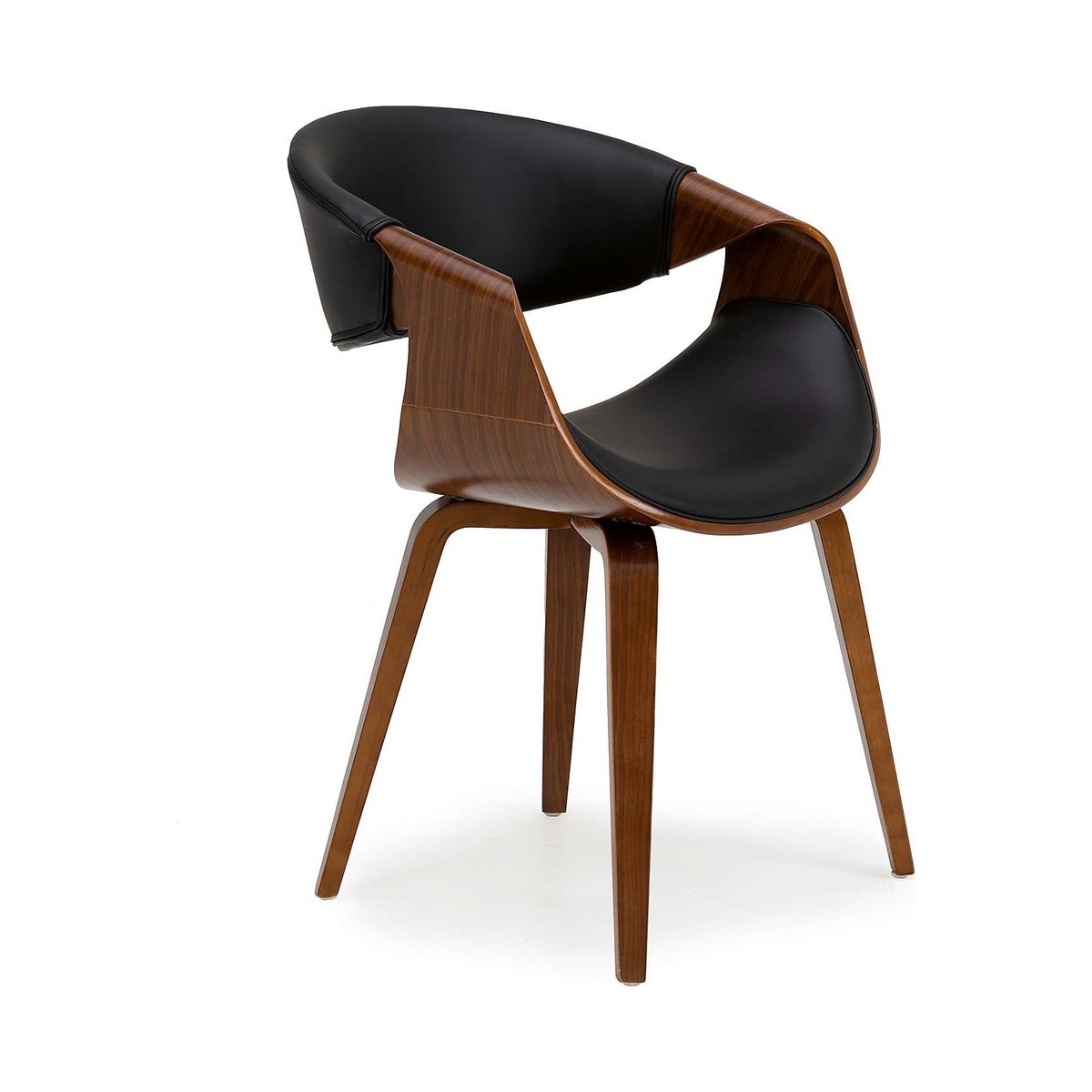 I’m a fan of the Modena chair for its clean lines and mix of black PU upholstery with warm woodgrain - it slots straight into contemporary, mid-century or Scandi-inspired rooms. It works equally well around a dining table, as a desk chair in a home office or tucked into a meeting nook. To style, pair it with a walnut or oak surface to echo the timber tones, add a simple woven cushion in a neutral hue for extra comfort, and ground the setting with a low-pile rug or matte-black side table for a cohesive look.