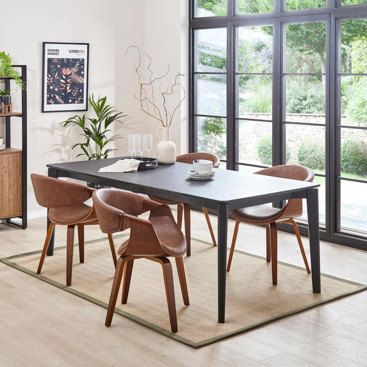 I love how the Modena chair’s warm tan faux leather and curved walnut legs bring a lived-in yet polished feel. It works equally well in modern industrial lofts, Scandi-inspired kitchens or transitional dining rooms, and the padded seat ensures comfort over long dinners while the timber frame adds a mid-century nod. For styling, team it with a light oak table or a sleek marble-top for contrast. Add tactile linens such as a herringbone runner and subtle brass accents in your tableware. The neutral tone lets you swap accessories seasonally - olive greens and terracotta for autumn, crisp whites and greenery come summer.