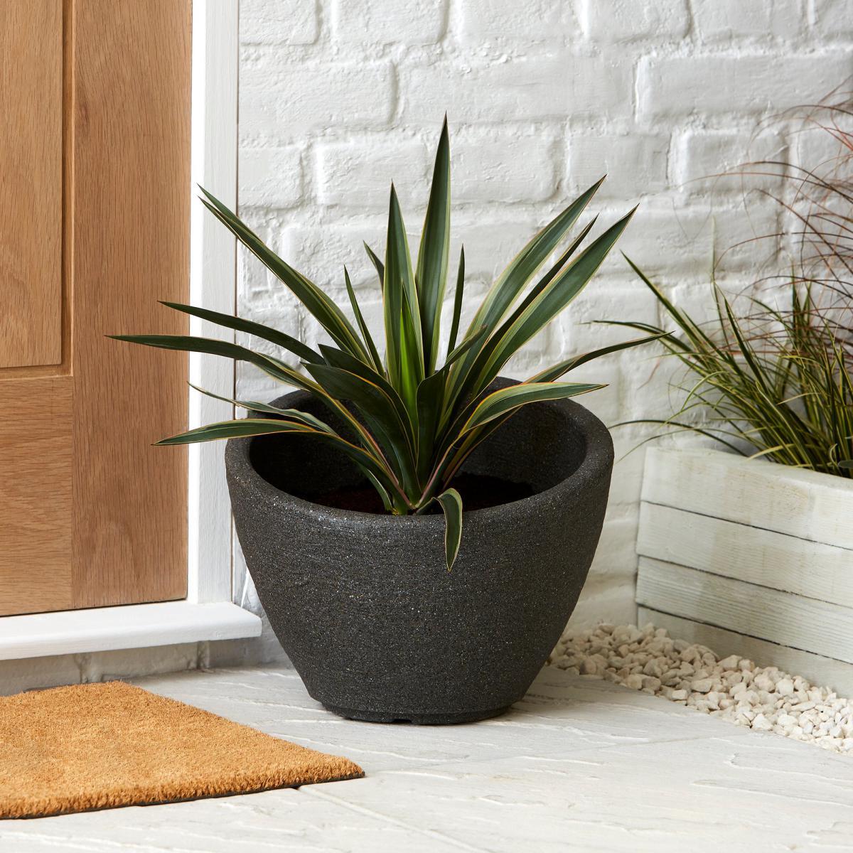 This dark grey planter is a stylish addition to any garden décor. Fashioned from durable and frost-resistant materials, this planter is perfect for indoor and outdoor use. The lightweight plastic planter is perfect for giving your outdoor space a modern touch. Hole drilling may be required.