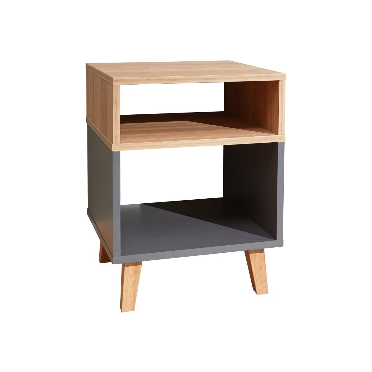 A fabulous little lamp table that would be a stylish addition to a lounge or bedroom. The simple cube-form table showcases Modena's contemporary appeal to perfection. A shallow oak-effect box is set above a deeper, grey-wrapped section and mounted on a set of Scandi-style solid wood legs. The double-sided design makes it suitable for positioning away from the wall. A versatile lamp table is such a useful furnishing piece - this Scandi-style model is a case in point. An attractive grey and Oak effect finish is enhanced by retro-inspired solid wood legs, it's a great match for modern interiors. The double-sided design means you can position it in the centre of the room, as well as against a wall - wherever it's needed. Perfect for a lamp or favoured pot plant, it's a good match for other Modena furnishing pieces.