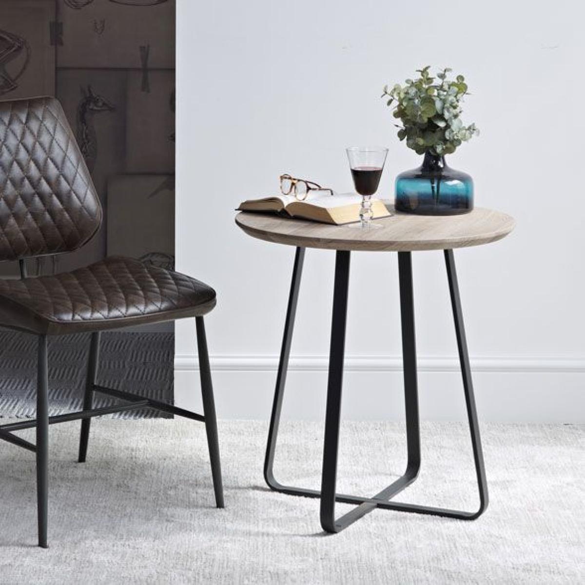 The versatile Modena wine table is the perfect size for sharing a bottle of wine or two on a Friday night with a friend. Its oak effect top and angled black metal legs will add an industrial modern style to your home with next to no effort required. Team with the rest of the Moderna living and dining furniture collection to complete the look.