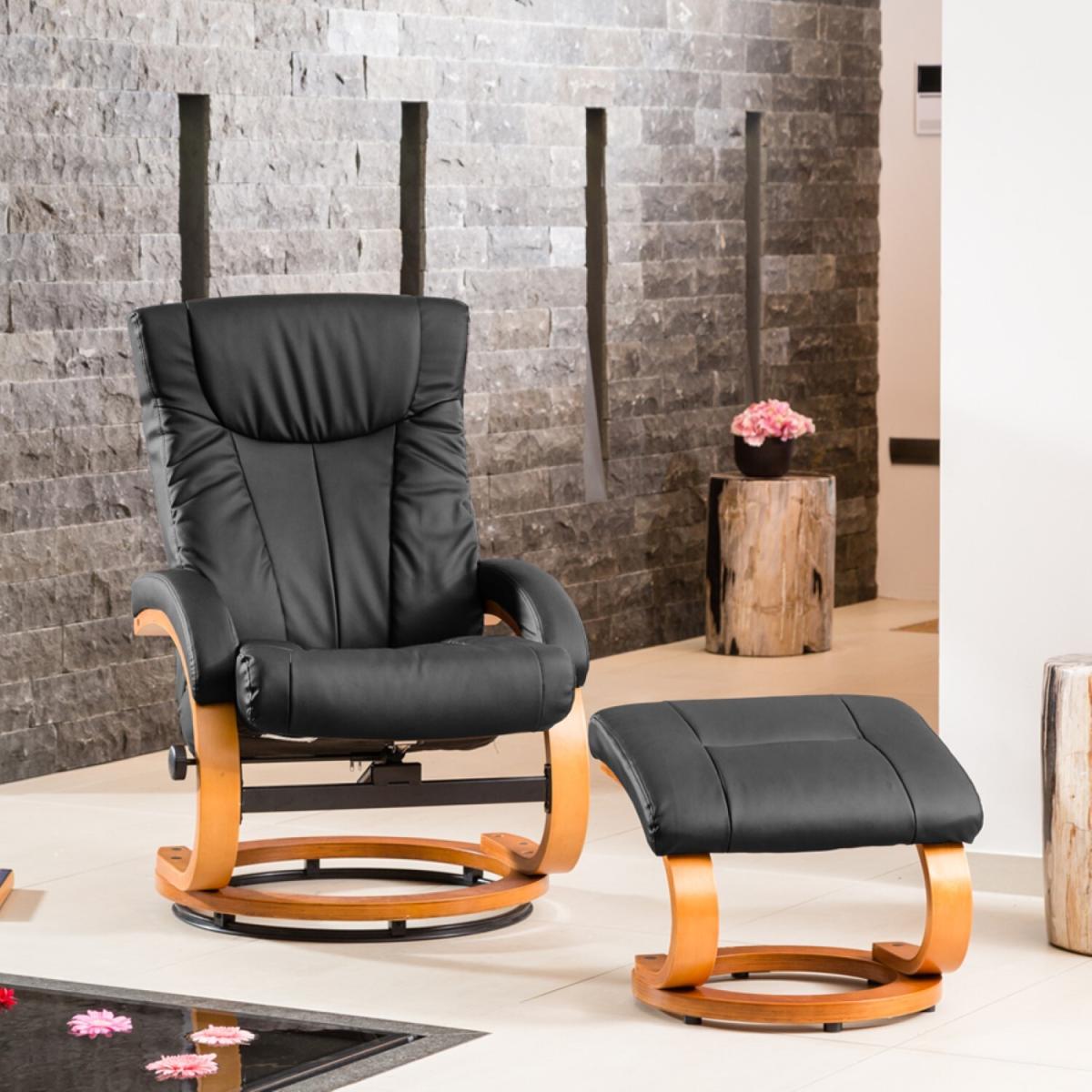 The Modena is a swivel-based recliner chair that is covered in soft, durable bonded leather and supplied with a matching footstool. This sleek and stylish chair is narrow in design without giving up any seating room - perfect for those with limited space. The swivel function operates via a plastic ring on the underside of the wooden base and the recline function is operated by movement and can be secure in place with a handle under the chair.