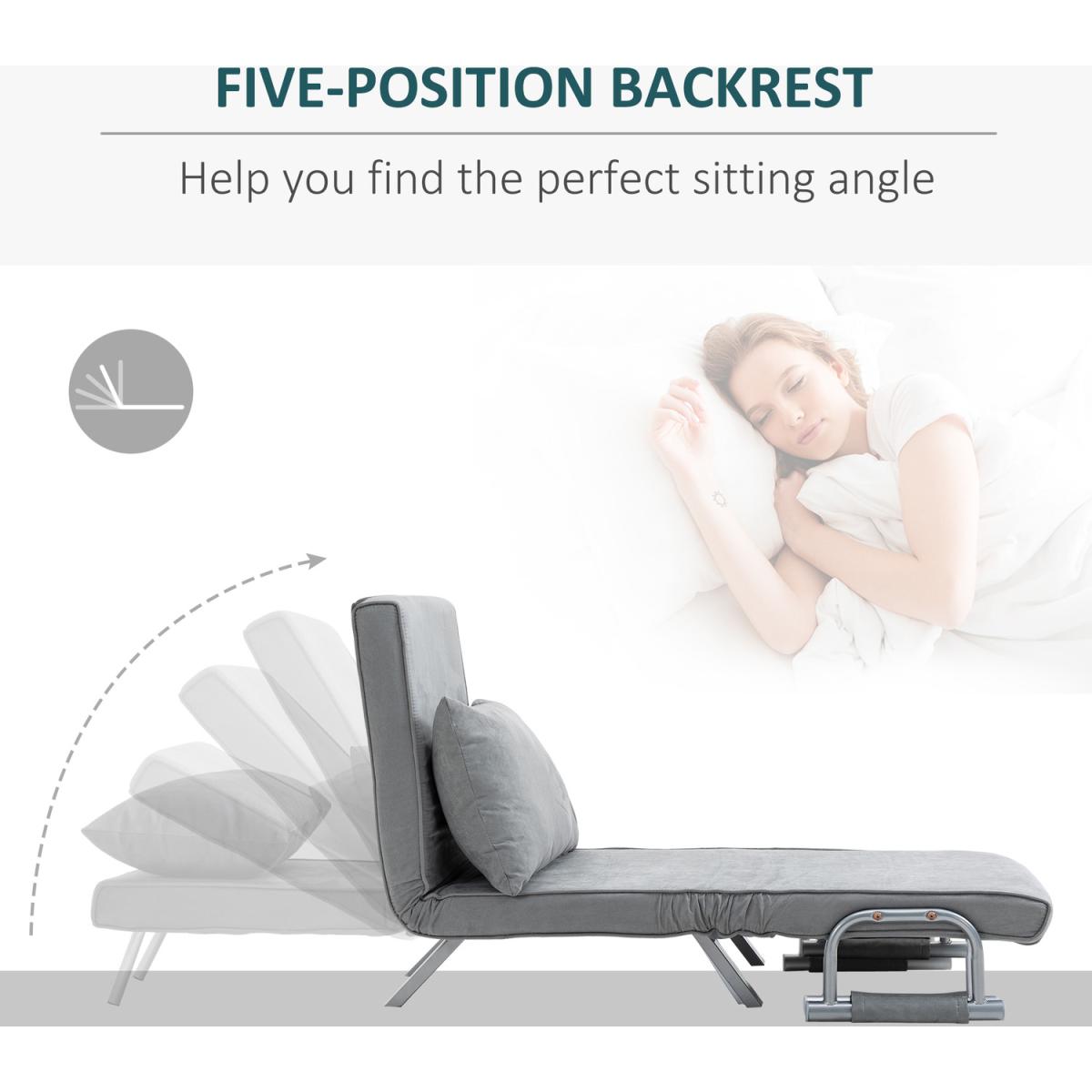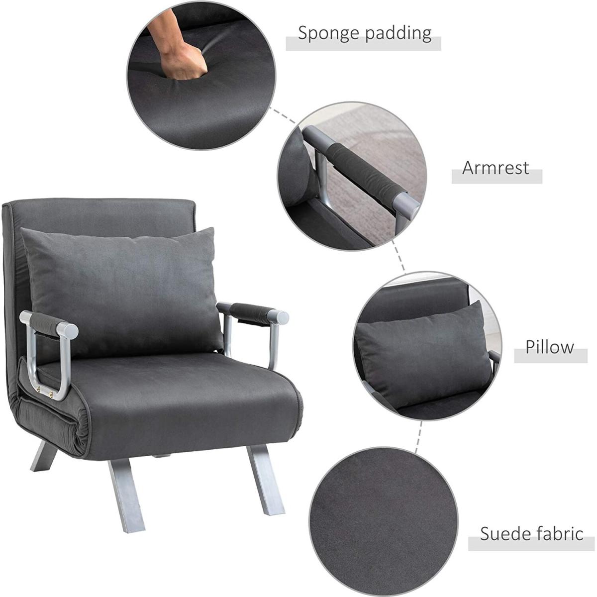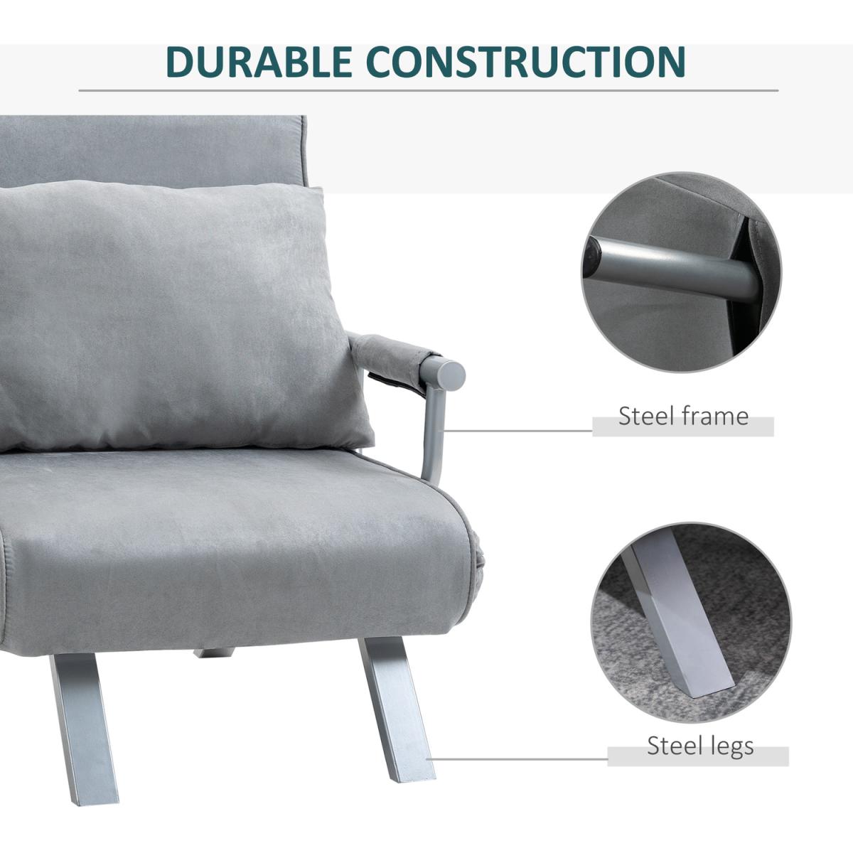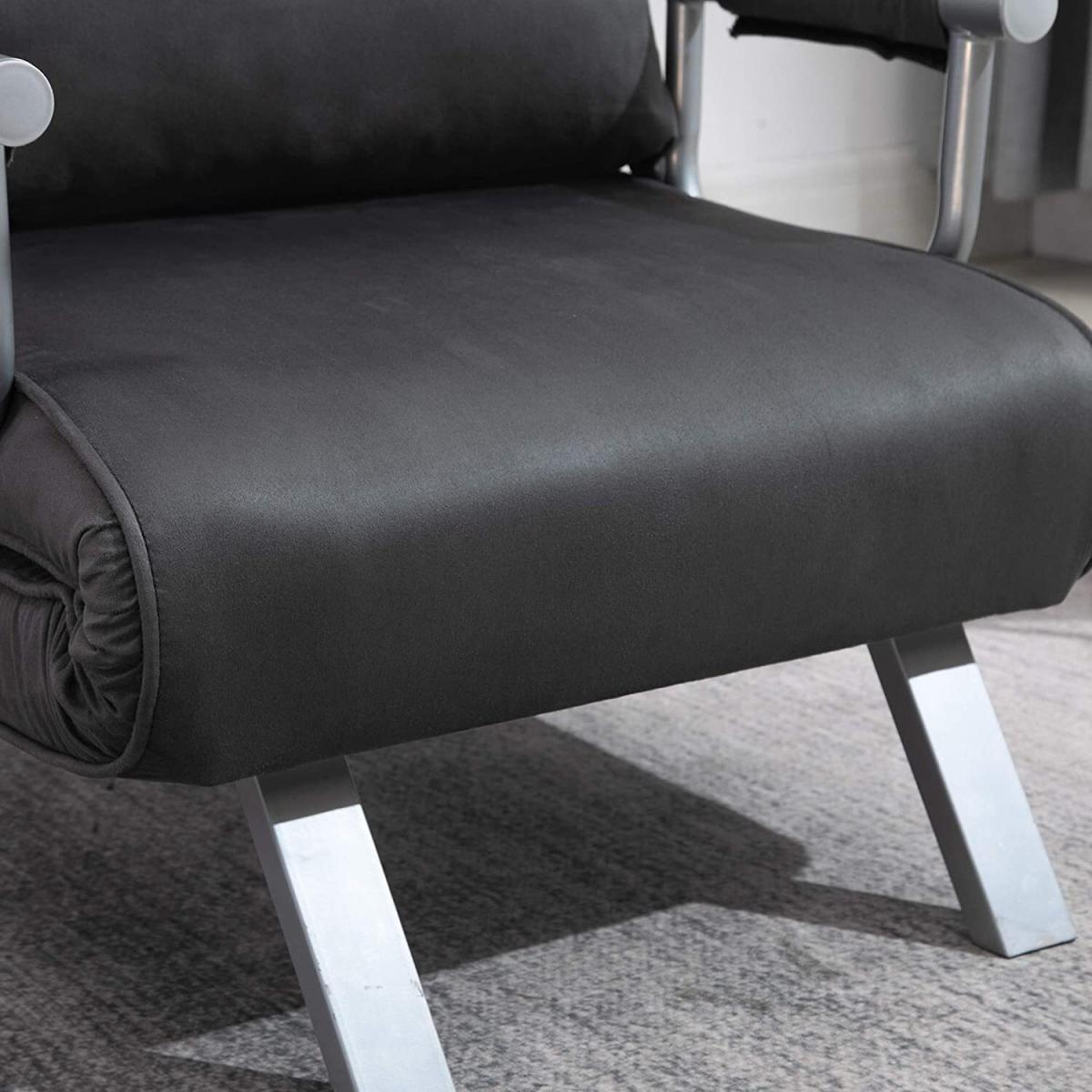 It effortlessly combines comfort and style for a piece that looks just as good as it feels. Using steel for the frame, the structure is solid and tough, and features a five-level back to adjust to a position best for you. Filled with thick foam padding, it is wrapped in suedette upholstery which is beautifully soft to the touch. It comes complete with armrests, slanted legs for stability and a large pillow for extra comfort and support.