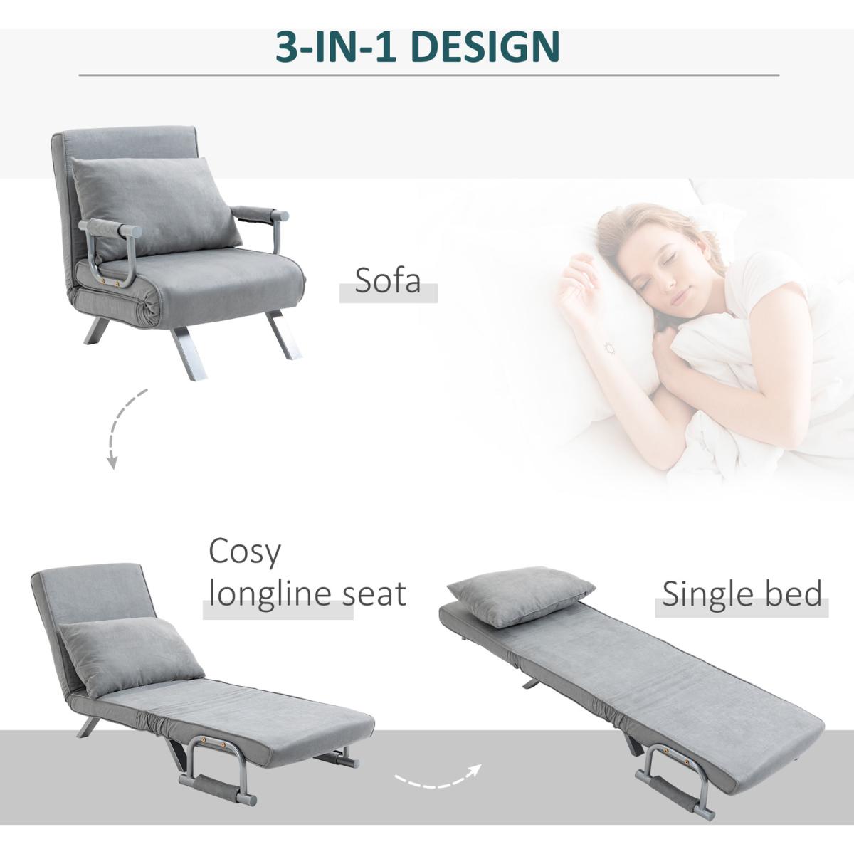 Modern 2-In-1 Design Single Sofa Bed - Grey