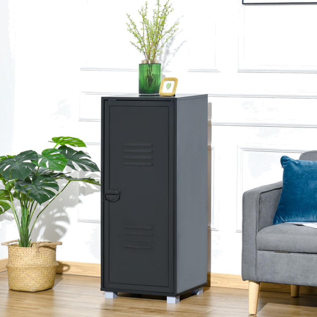 Covered with louvered metal door to keep items out of sight as well as maintain ventilation. Suitable for storage daily accessories, office supplies, as well as towels and books. Flexible storage solution for home office, living room or other spaces needing a bit more storage.