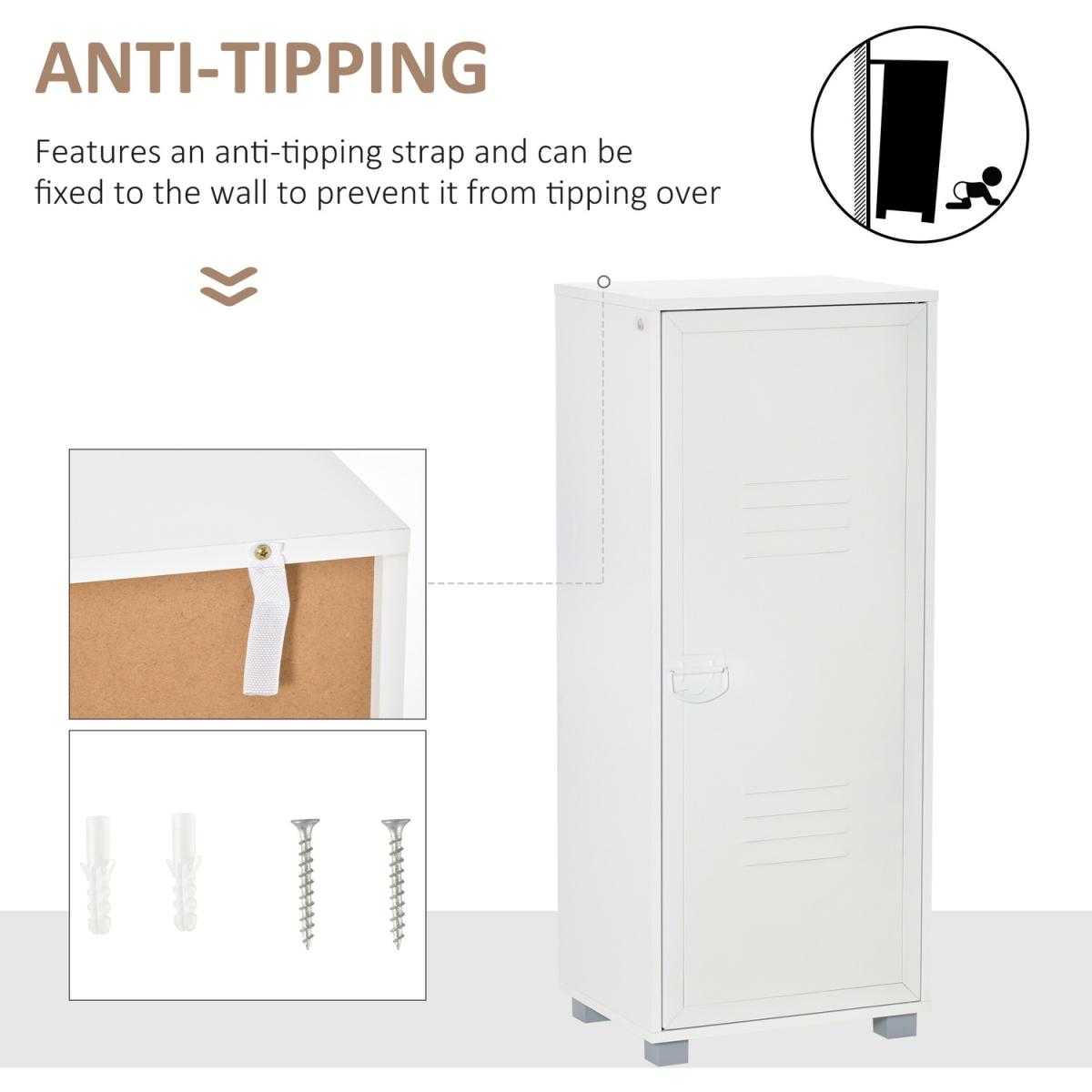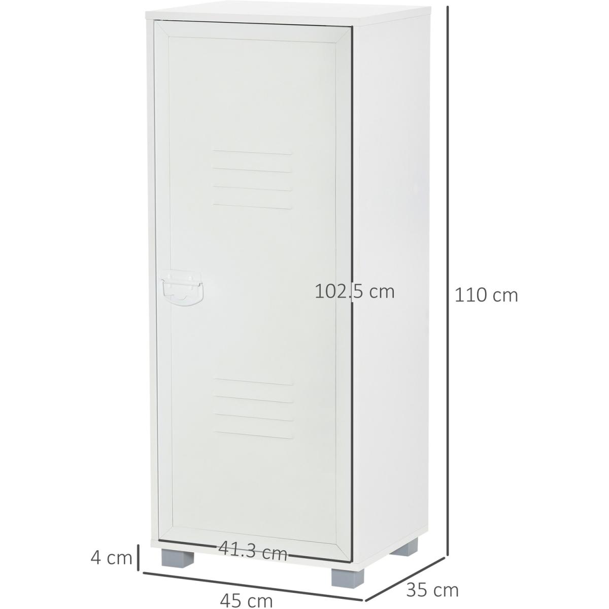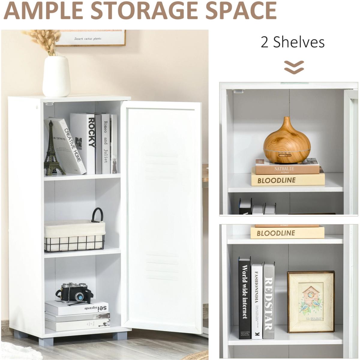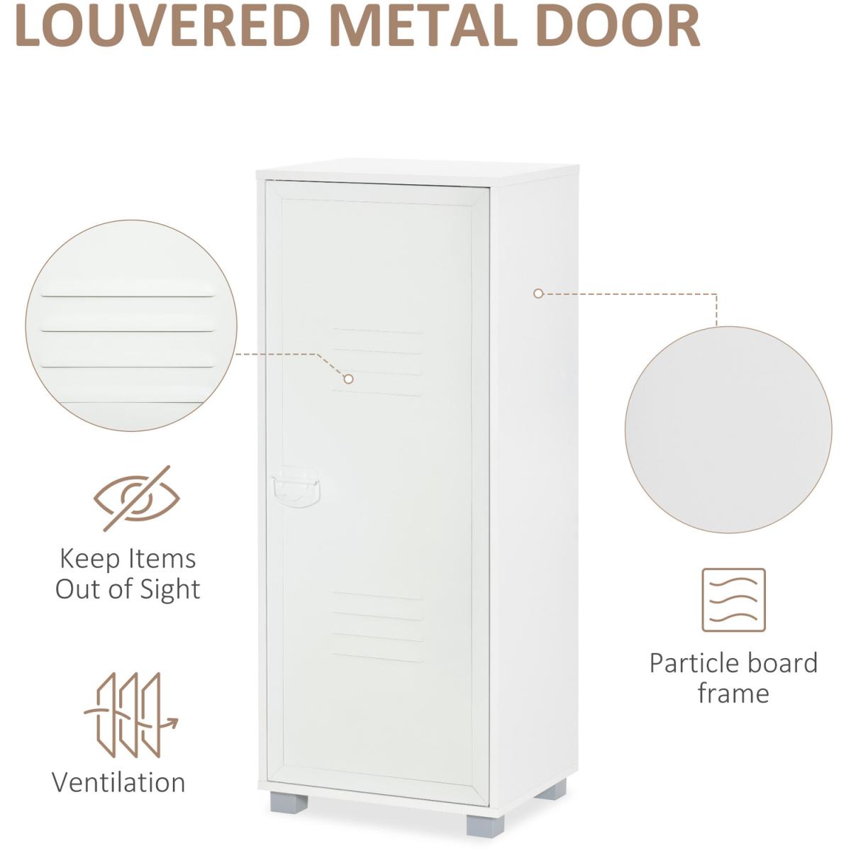 Covered with louvered metal door to keep items out of sight as well as maintain ventilation. Suitable for storage daily accessories, office supplies, as well as towels and books. Flexible storage solution for home office, living room or other spaces needing a bit more storage.
