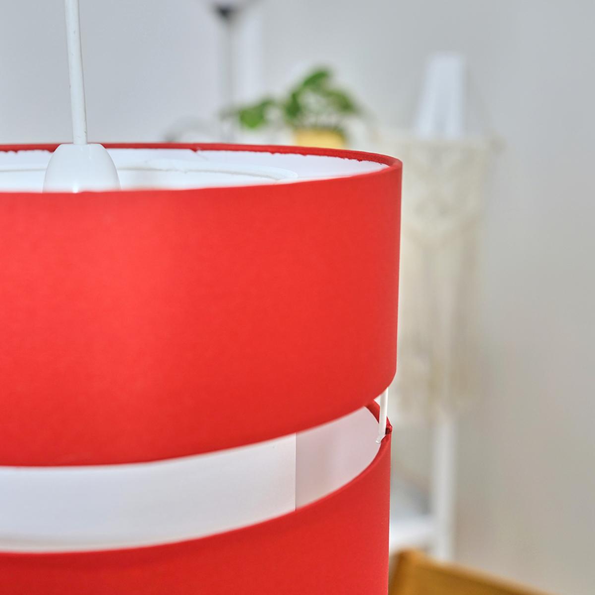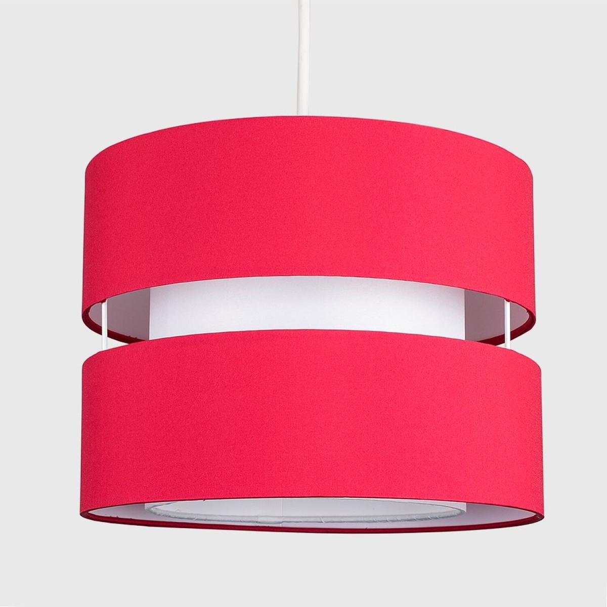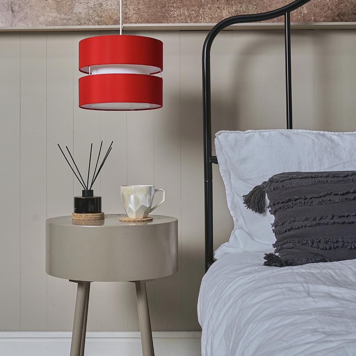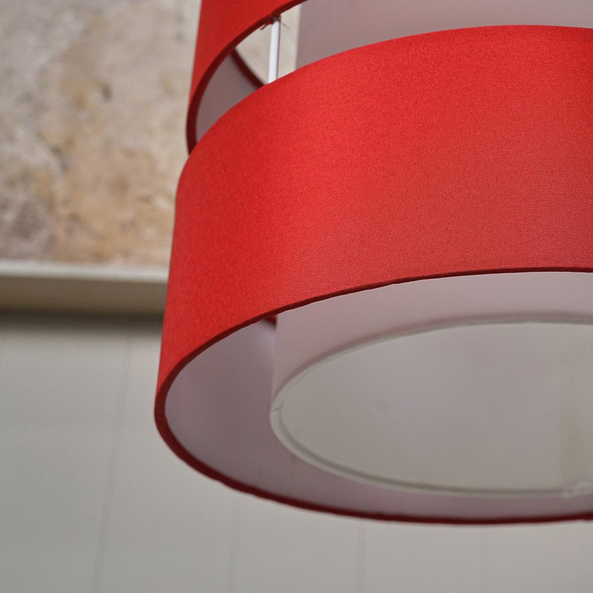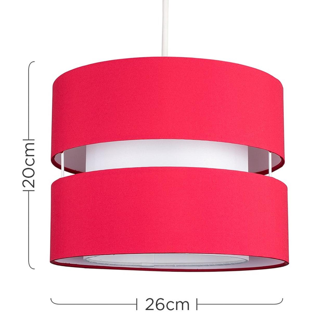 Modern 2 tier ceiling pendant shade is perfect as a low cost way to dress up an existing ceiling fitting. The shade in a red fabric and white diffuser allows the light to be dispersed throughout the room evenly. Perfect for bedrooms, living rooms, hallways, lounges and landings. 1 x 60w BC B22 GLS Bulb Required- Not Supplied