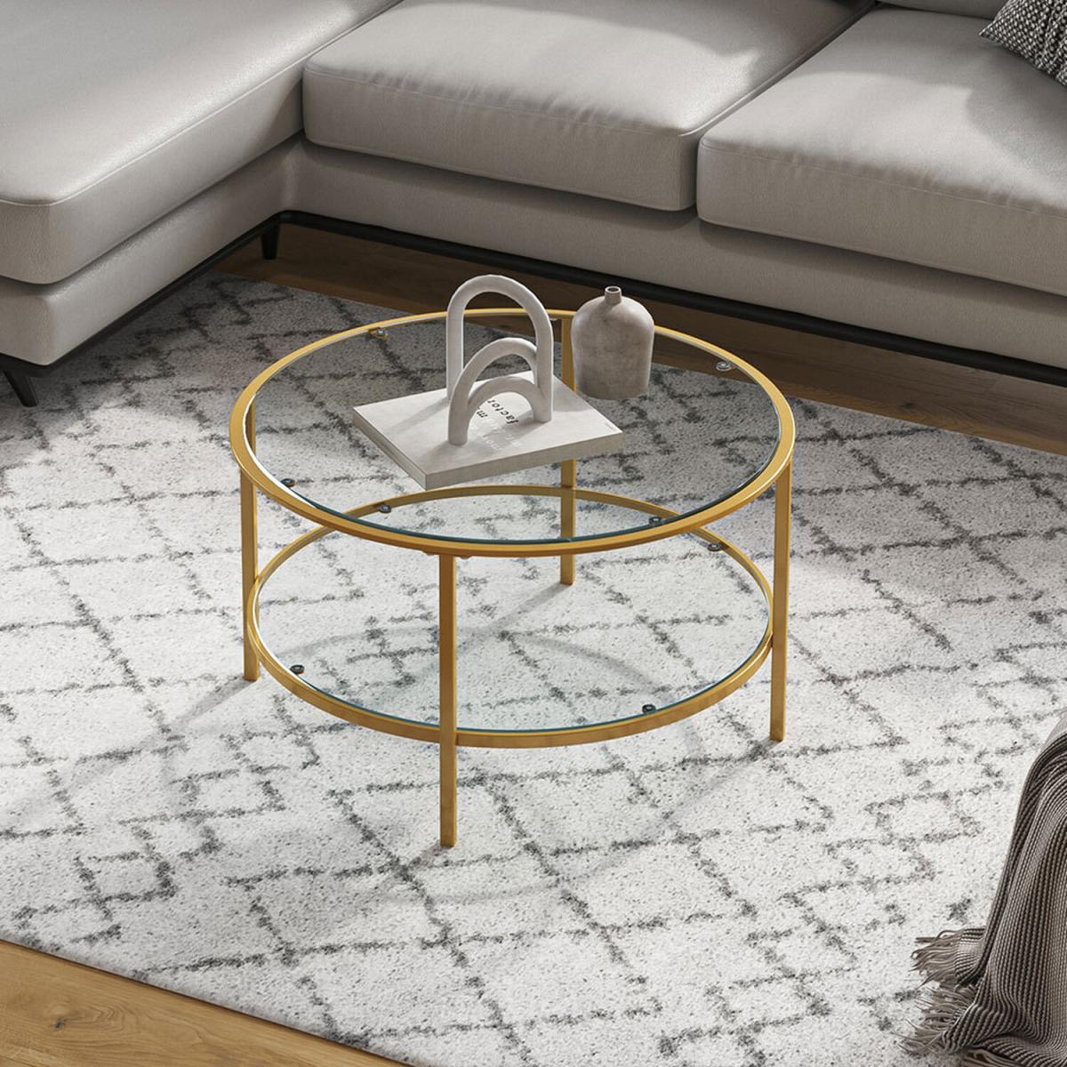 Modern light luxury design, made of high quality iron pipe and tempered glass. The design of the legs is industrial strengthening iron for long lasting. The bright glass top makes your room appear fluid and spacious, functional and will reflect the light to keep your living room bright, state a clean and tidy feeling. Golden legs really are the standout feature of the piece, a truly stunning addition to the overall design. 2-tier design with a lower shelf to create more storage area. The top table is large and can be used for tea cups, snacks, magazines, table lamps, etc. With wet cloth you can wipe dirty stain easily on surface and no worry about water spill. The side coffee table goes well with any modern, mid century and glamorous regency interior designs, create a light and open feel in your home.