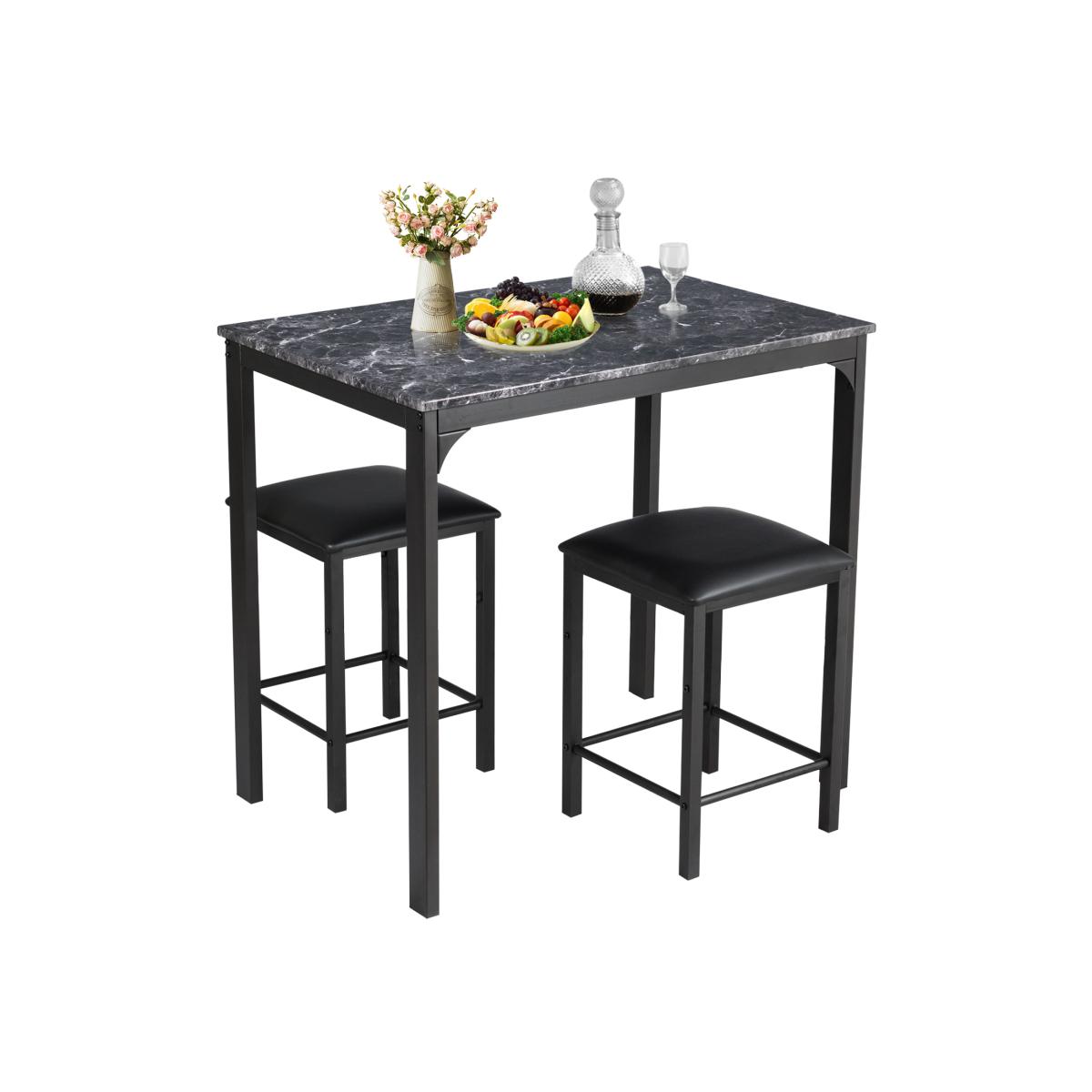 Looking for a compact table and chair set? Our dining table set, featuring with 1 counter height top and 2 convenient stools, takes up little space and will be your best option! Made of strong iron tubes and premium density boards, our table and chair set are sturdy and durable. Designed with spacious tabletop and counter height, the dining set accommodates 2 people to eat together, suitable to be placed against the wall or in the corner. And when not in use, you can also put stools neatly under the table to save your space. With stylish and modern outlook, the classic 3-piece table set goes well with your home decor!