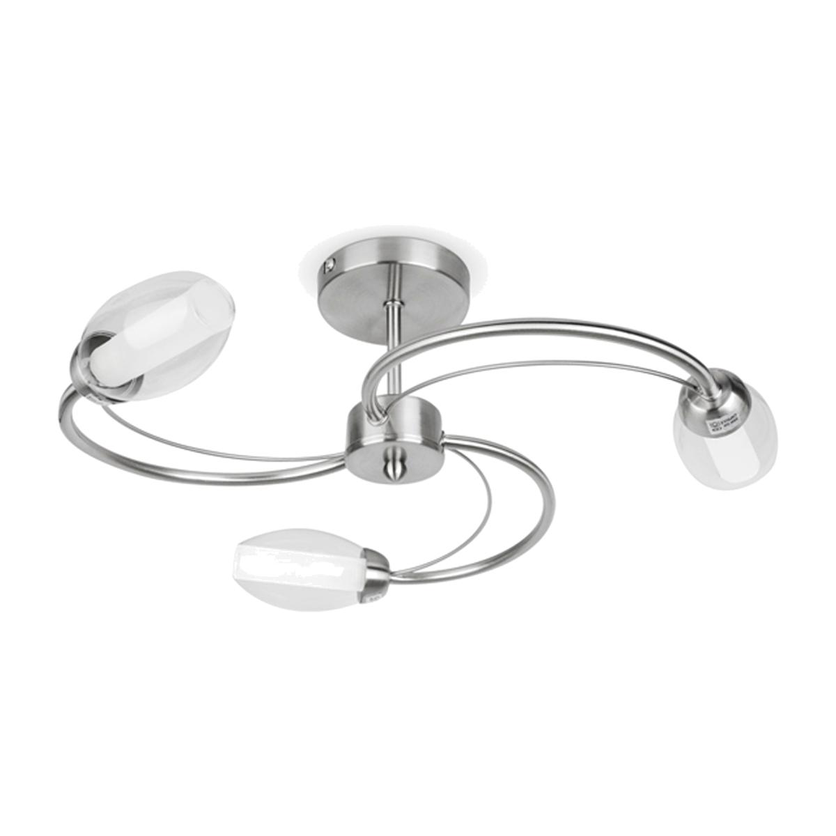 Modern 3 Way Brushed Chrome And Glass Swirl Design Flush Ceiling Light - Silver