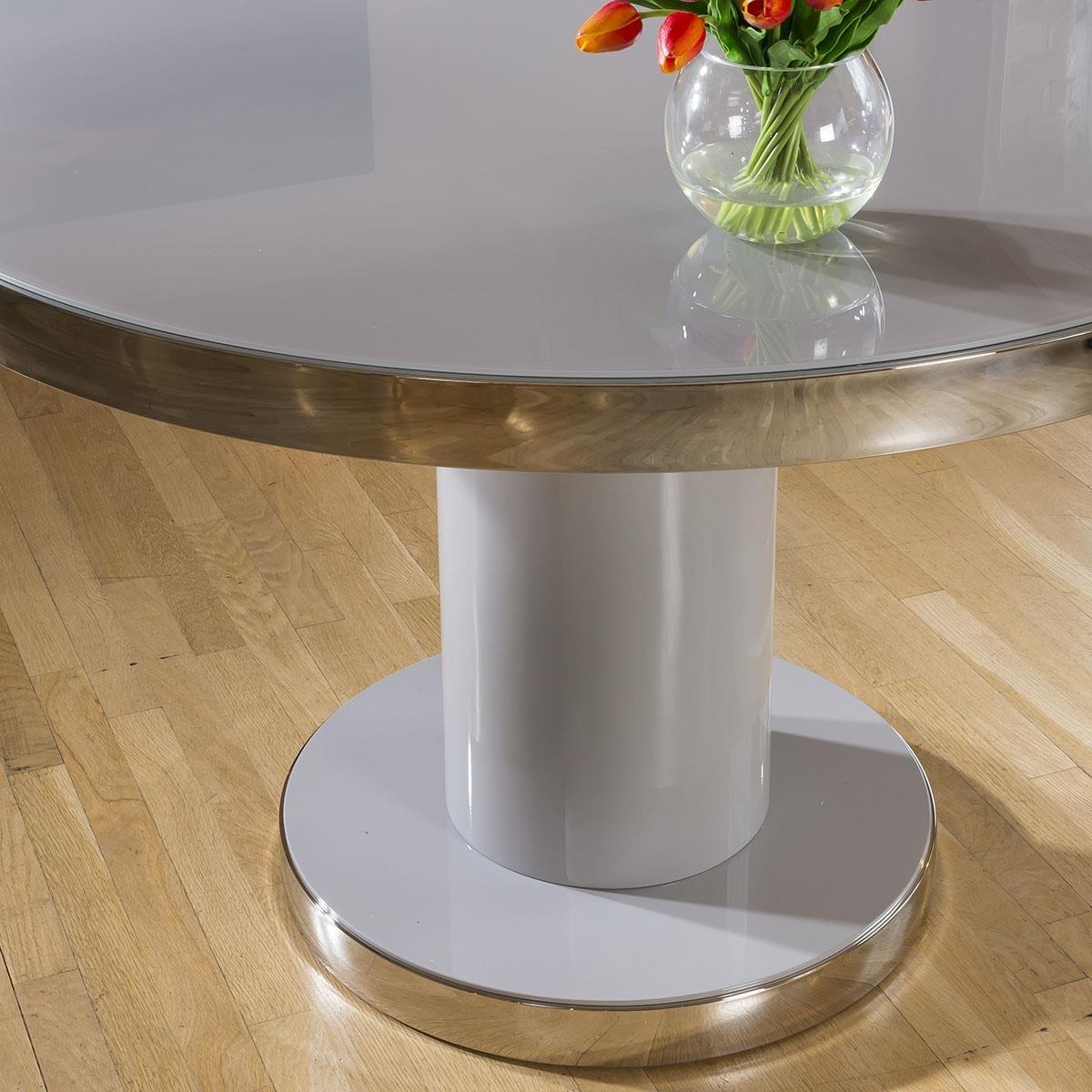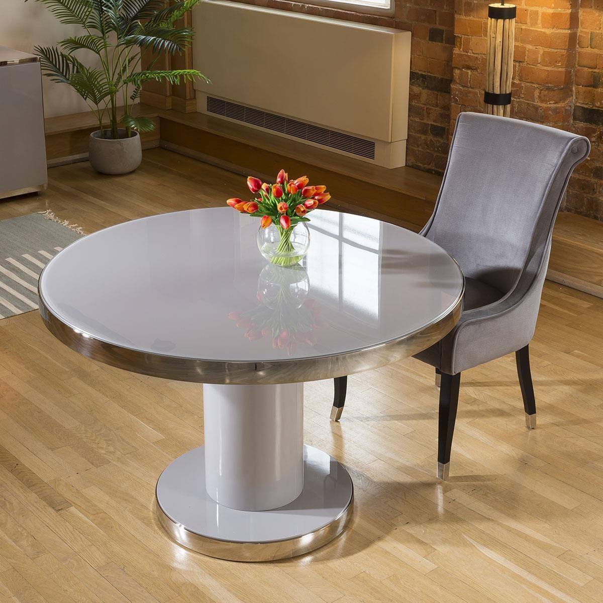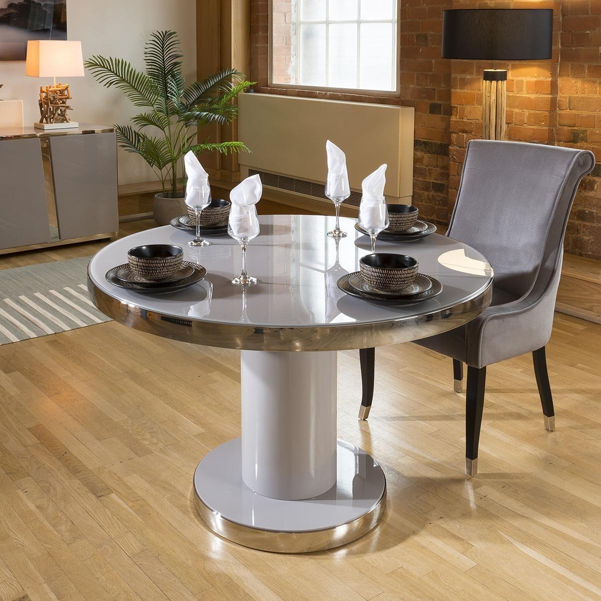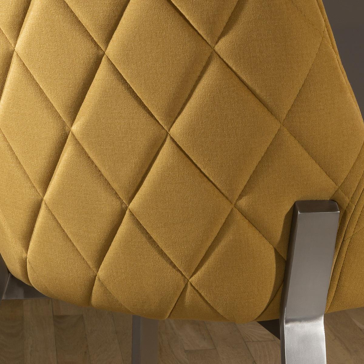 The table has a tempered glass top to match the finish of the table, with a polished stainless steel top edge and base line for a fully balanced aesthetic, finished in a high gloss grey top and base. This dining set includes 4 Carver Dining Chairs With Mustard Quilted Fabric and Brushed Stainless Steel Legs, adding that perfect splash of colour. Quatropi Luxury Dining Sets have been designed to stand out in the most contemporary dining rooms and kitchens in the UK. The dining table sets have been put together by our expert designers to provide a large combination of choice from farmhouse style to prestige, including small or large dining table sets, long narrow tables, round breakfast tables, farmhouse solid oak sets, extendable dining sets, corner sofa bench sets - only to mention a few! Our range of dining chairs that we match to the dining tables provides you with a large choice of sets - these are available in many colours and made in many styles, such as carver, faux leather, suede, velvet and many more. W120cm D120cm H76cm Stainless Steel Detailing Set includes dining table and 4 dining chairs