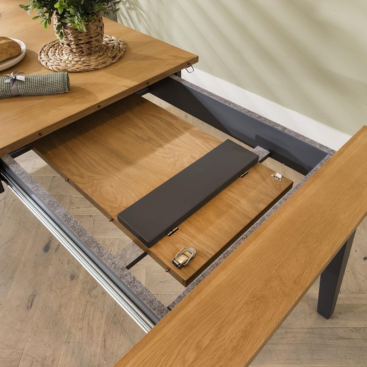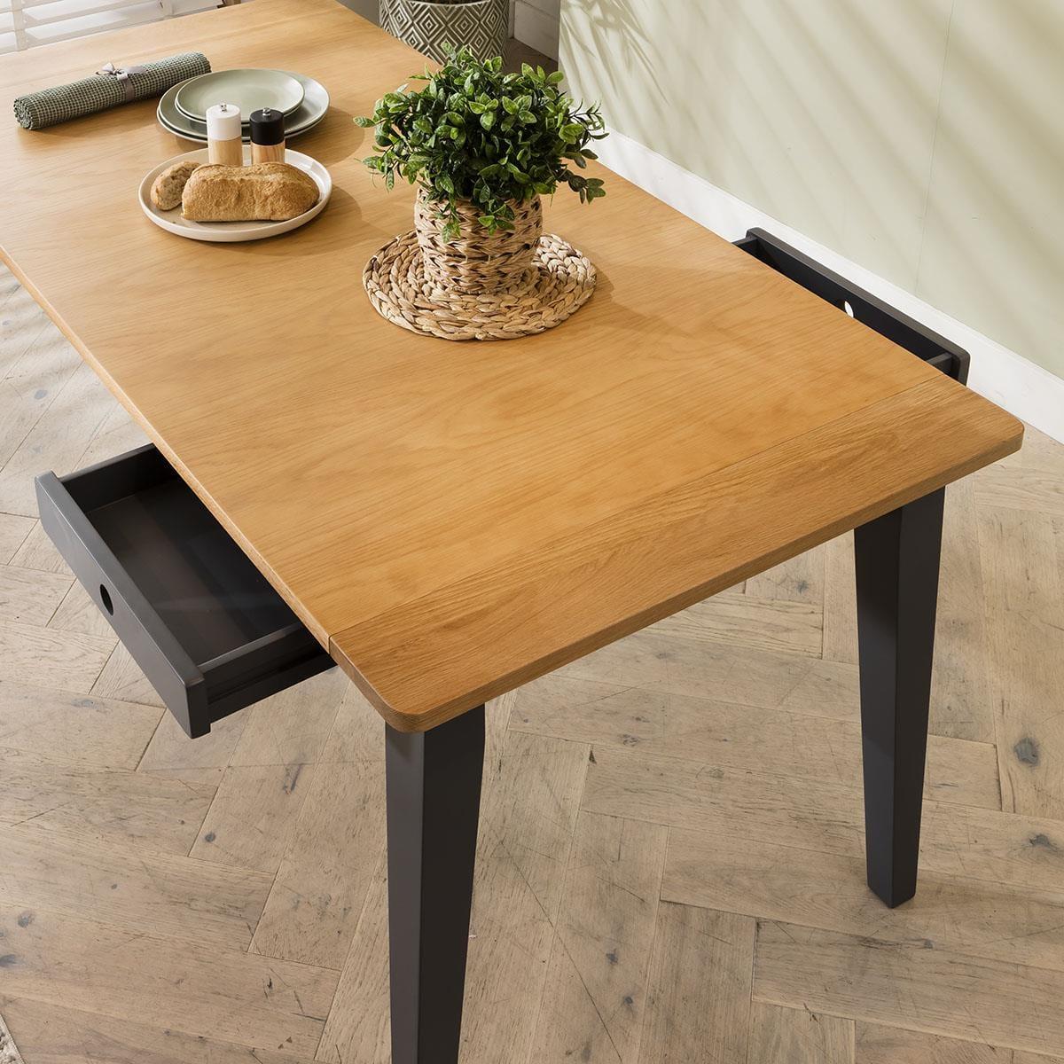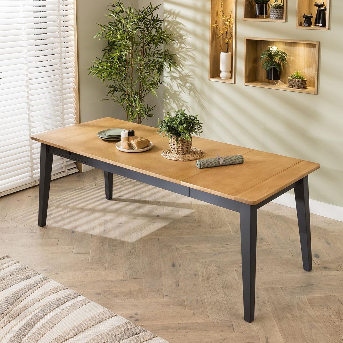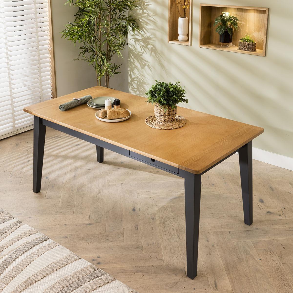 Experience the perfect fusion of timeless elegance and modern design with our 6 seater dining set, seamlessly blending traditional practicality with chic style and premium quality. Our oak extending dining table, paired with six Zoe dining chairs in berry red velvet fabric, promises to transform your dining space. Including a wooden table marrying simplicity and sophistication - it's the Ralph dining table. Its sleek, grey frame and legs accentuate the oak tabletop, with built-in drawers for storing dining essentials. Effortlessly extendable, this modern dining table extends from 175cm to 215cm, comfortably accommodating 6 people. For a harmonious blend of elegance and comfort that will elevate your dining experience. Crafted with the utmost attention to detail, these Zoe dining chairs boast luxurious berry red velvet upholstery with sleek black metal legs. This set of 6 red velvet dining chairs have cushioned seats that offer unmatched comfort. This 6 seater dining set combines modern Zoe chairs with the stunning Ralph table. Whether you love the Zoe chairs and would like to purchase them individually, or you think the Ralph table would complete your interior scheme better with another chair, you can easily mix and match our modern dining tables and chairs to curate something truly unique. Table Size W175-215cm D87cm H77cm Chair Size W57cm D62cm H83cm Dining Table And Chair Set For 6