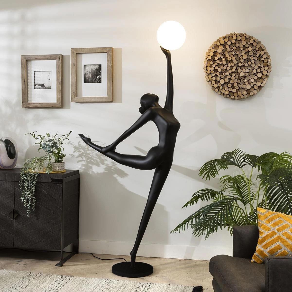 The gentle nature and aesthetic of this floor lamp with a slender design, depicting the silhouette of a woman dancer lends an unusual and alluring charm in exquisite metallic black. This unusually attractive floor lamp will add a gorgeous glow to your home whilst also being a truly spectacular lighting feature. Place in the lounge for a mood enhancing display or how about in a lobby to create a stunning focal point for when guests arrive - this wonderfully ornamental piece adds an immediate wow factor to any interior. W:80cm, D:45cm, H:190cm Tall Black Metal Woman Dancer Sculpture Floor Lamp Built-in LEDs W:80cm, D:45cm, H:190cm Tall Black Metal Woman Dancer Sculpture Floor Lamp Built-in LEDs