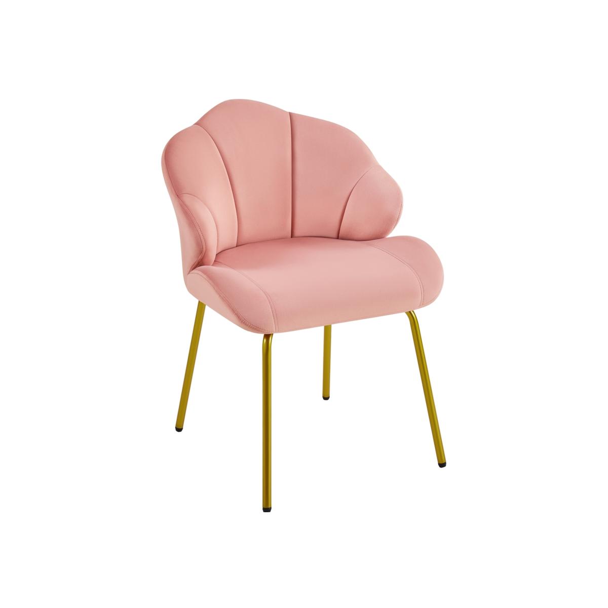 Check out this velvet accent chair with an eye-catching shell-shaped backrest. Its streamlined silhouette, luxurious velvet fabric, and channel tufting make it a versatile addition to any space. This armless chair is constructed of a sturdy plywood and iron frame, complemented by durable metal legs for enhanced stability. The flared backrest offers firm support for your back and waist, providing a comfortable sitting experience. Compact and lightweight, this chair is ideal for living rooms, vanity rooms, bedrooms, study nooks, home offices, or commercial environments.