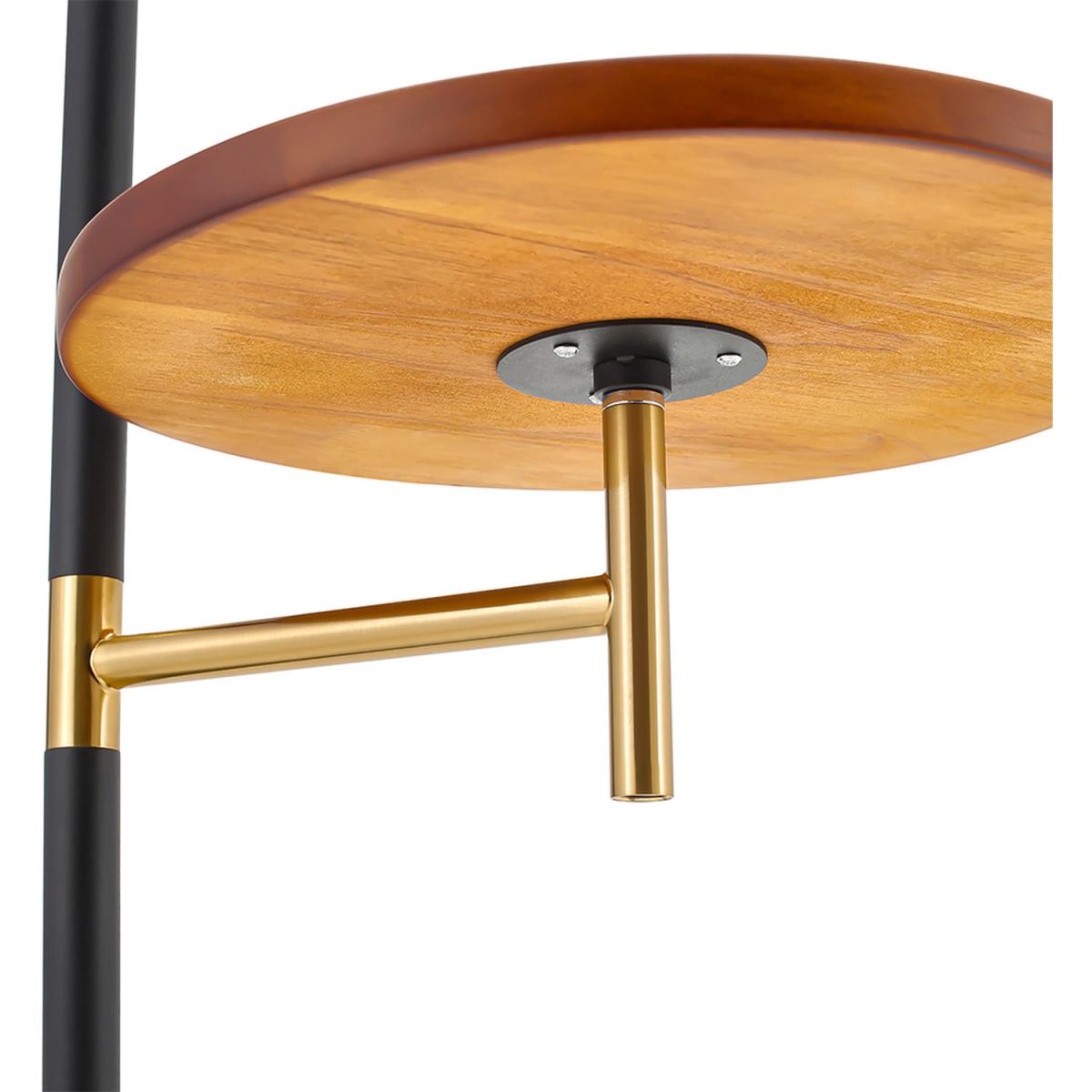 Modern Adjustable Arc Floor Lamp with Wood Tray - Black and Gold / Black