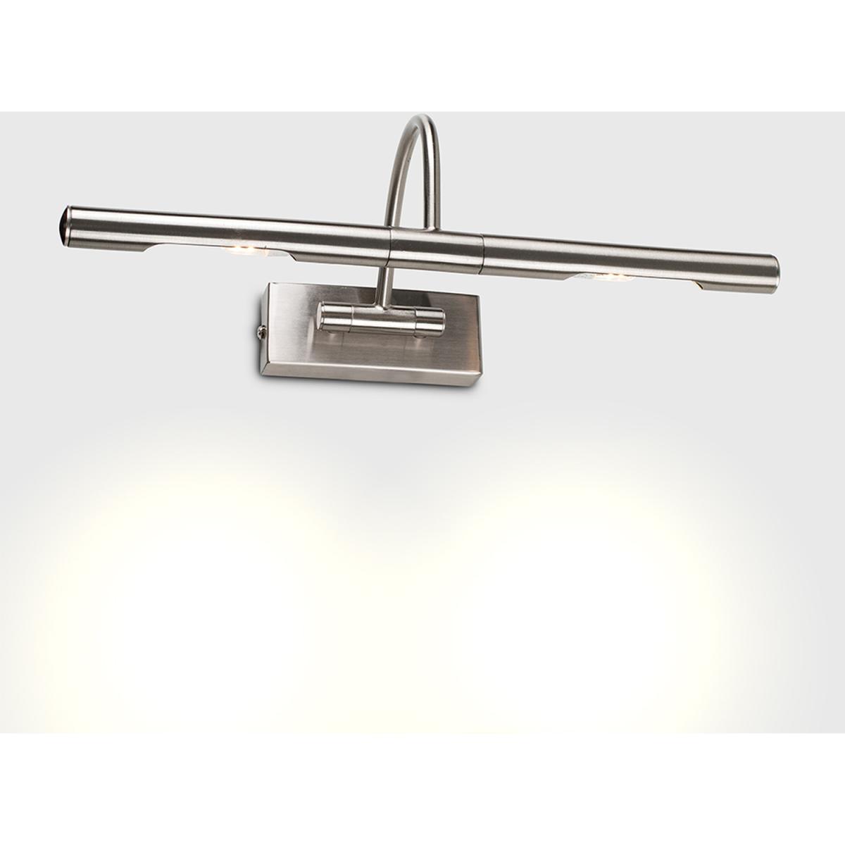 An attractive and modern satin nickel twin picture wall light, with an adjustable arm section, to help direct the light to your preferred position. Ideal for lighting up your favourite wall art, photos, certificates and important home features. Perfect for hallways, living room, bedrooms and landings.