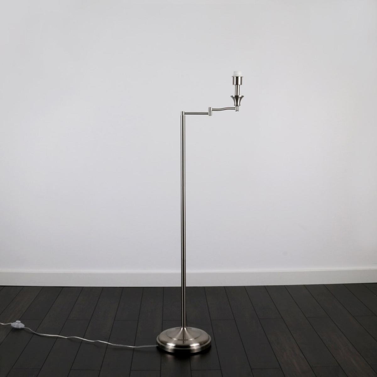 Contemporary floor lamp base in a brushed chrome finish, with an adjustable 'swing arm' function. This modern lamp will look great in an any interior space. Ideal for lounges, bedrooms and other living areas. Lamp base only - pair with a shade of your choice to suit your decor.