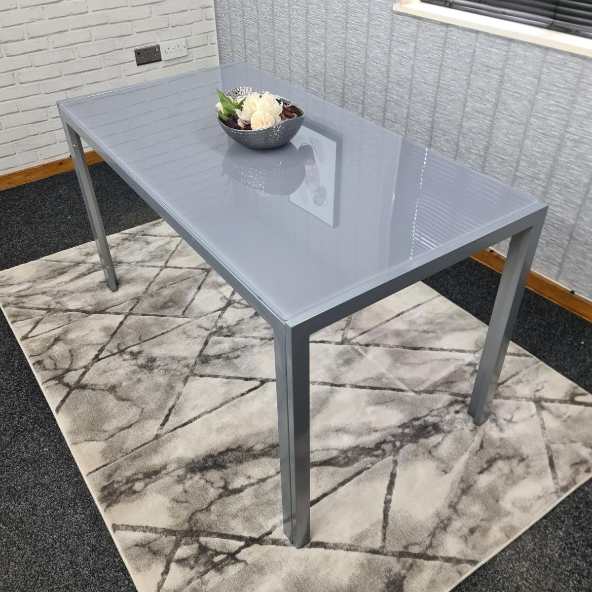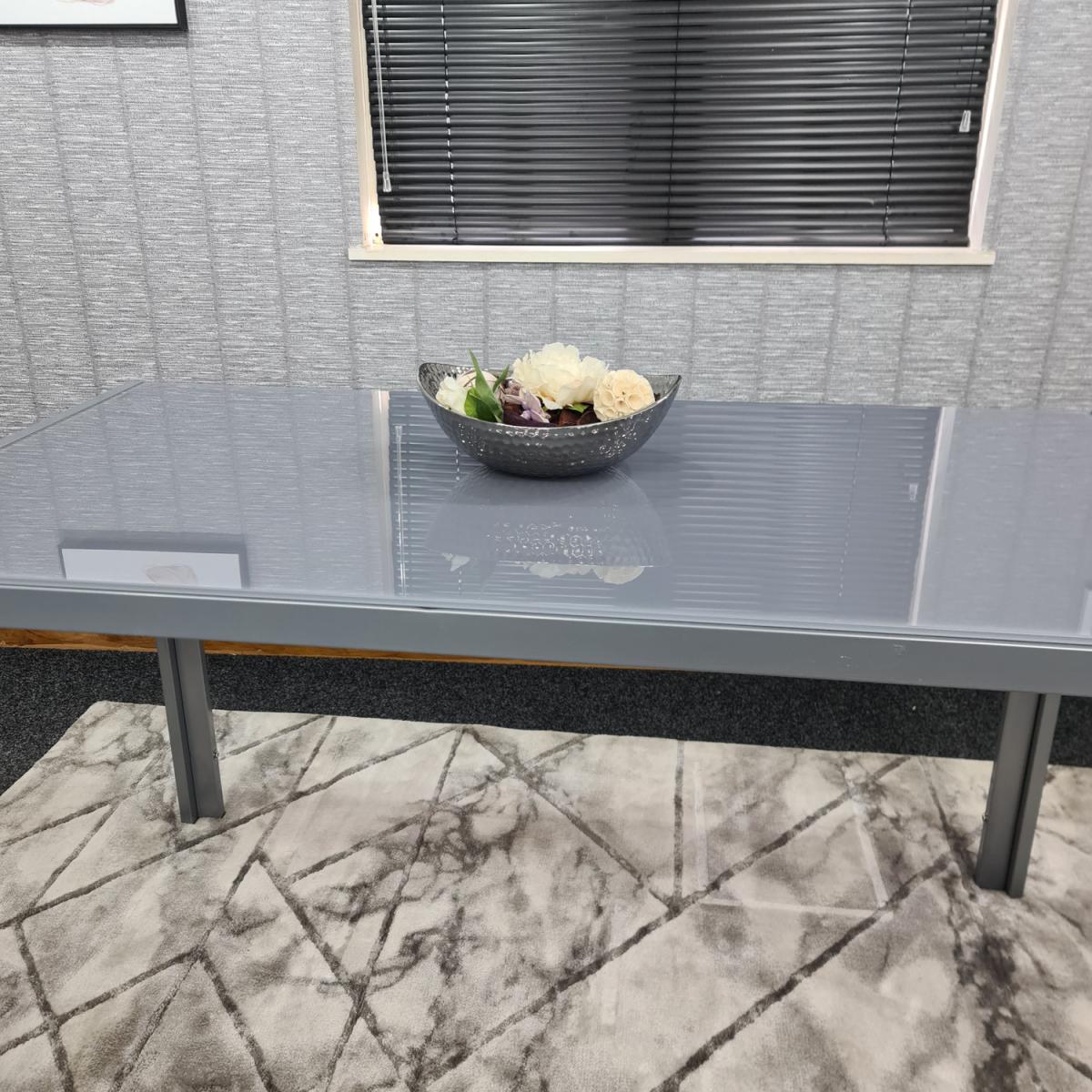 I’m a fan of this grey glass dining table for its sleek, uncluttered lines and subtle tint, which keeps a dining area feeling light and open. It works particularly well in minimalist, industrial or Scandinavian-inspired spaces, where the cool tone can be balanced with warmer natural materials. For styling, pair it with mixed-material chairs - think soft upholstery or timber to soften the glass - and add a simple centrepiece, such as a low ceramic bowl or a trio of candlesticks. A textured or patterned rug underneath will ground the table and introduce contrast, while a few houseplants nearby will bring life and warmth to the overall look.