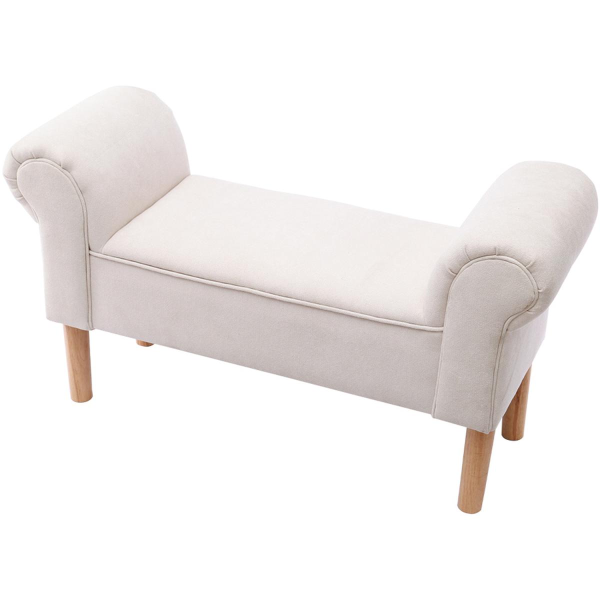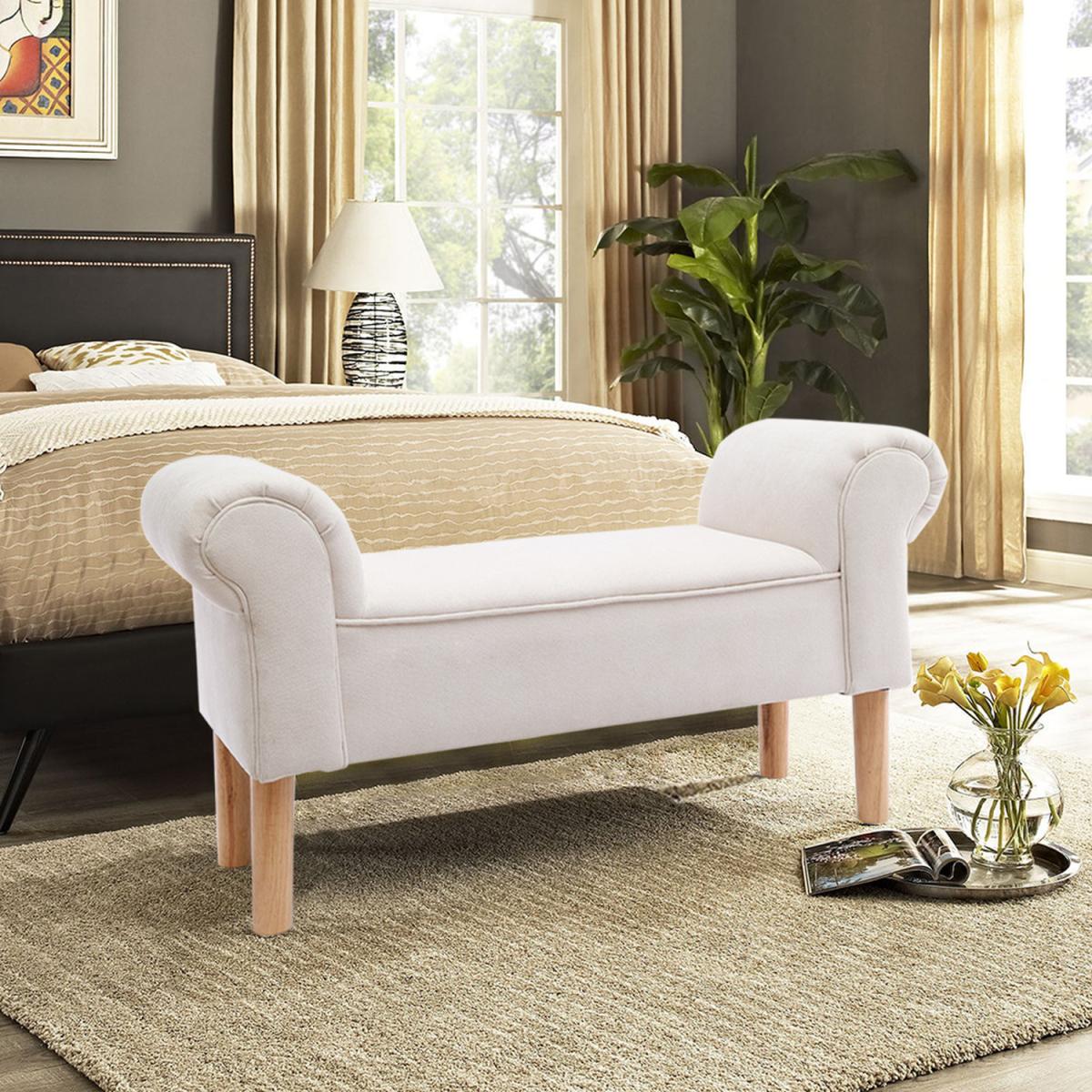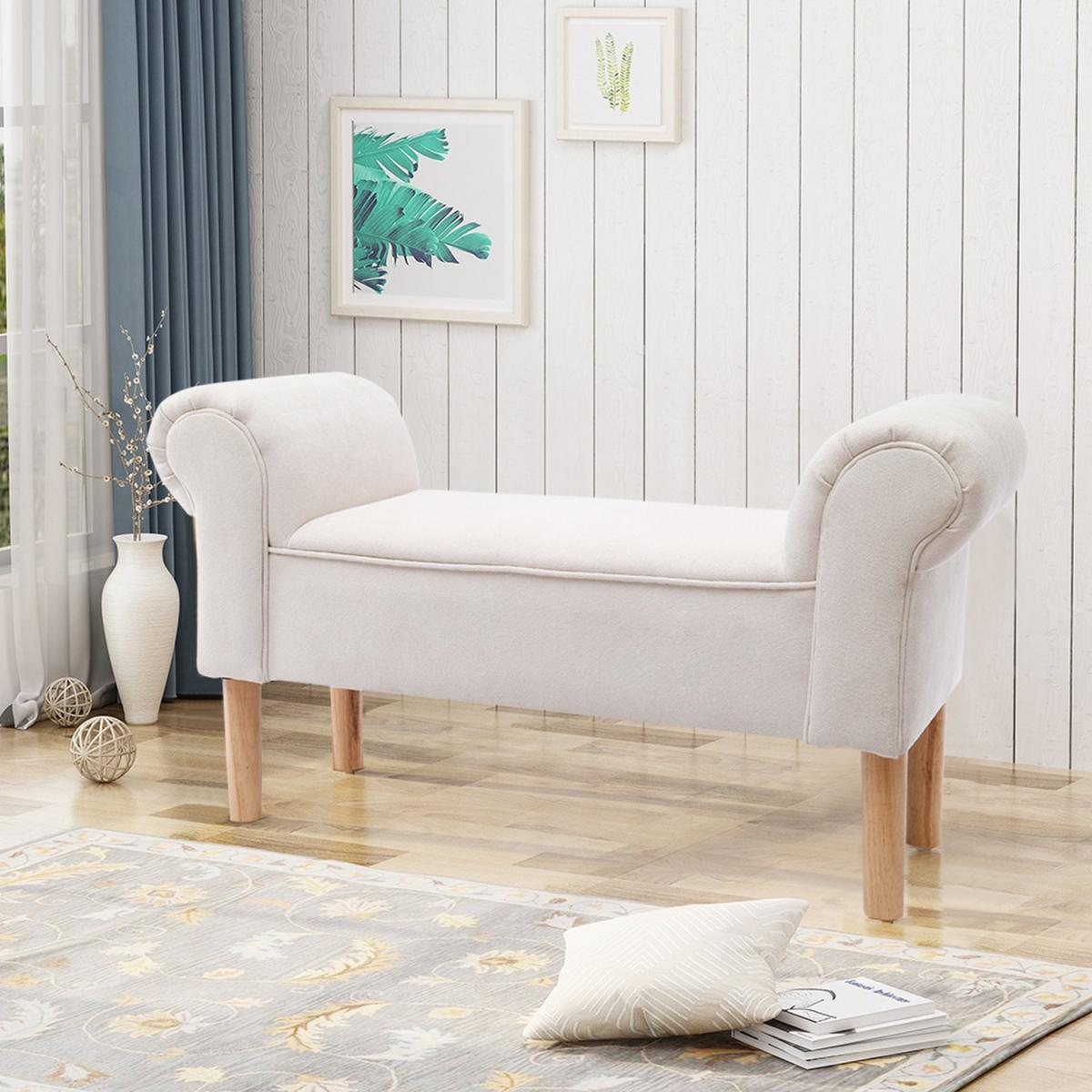 Modern Bed Side Bench Rolled Arm Chaise Lounge Bedroom Footrest - Beige Yellow
