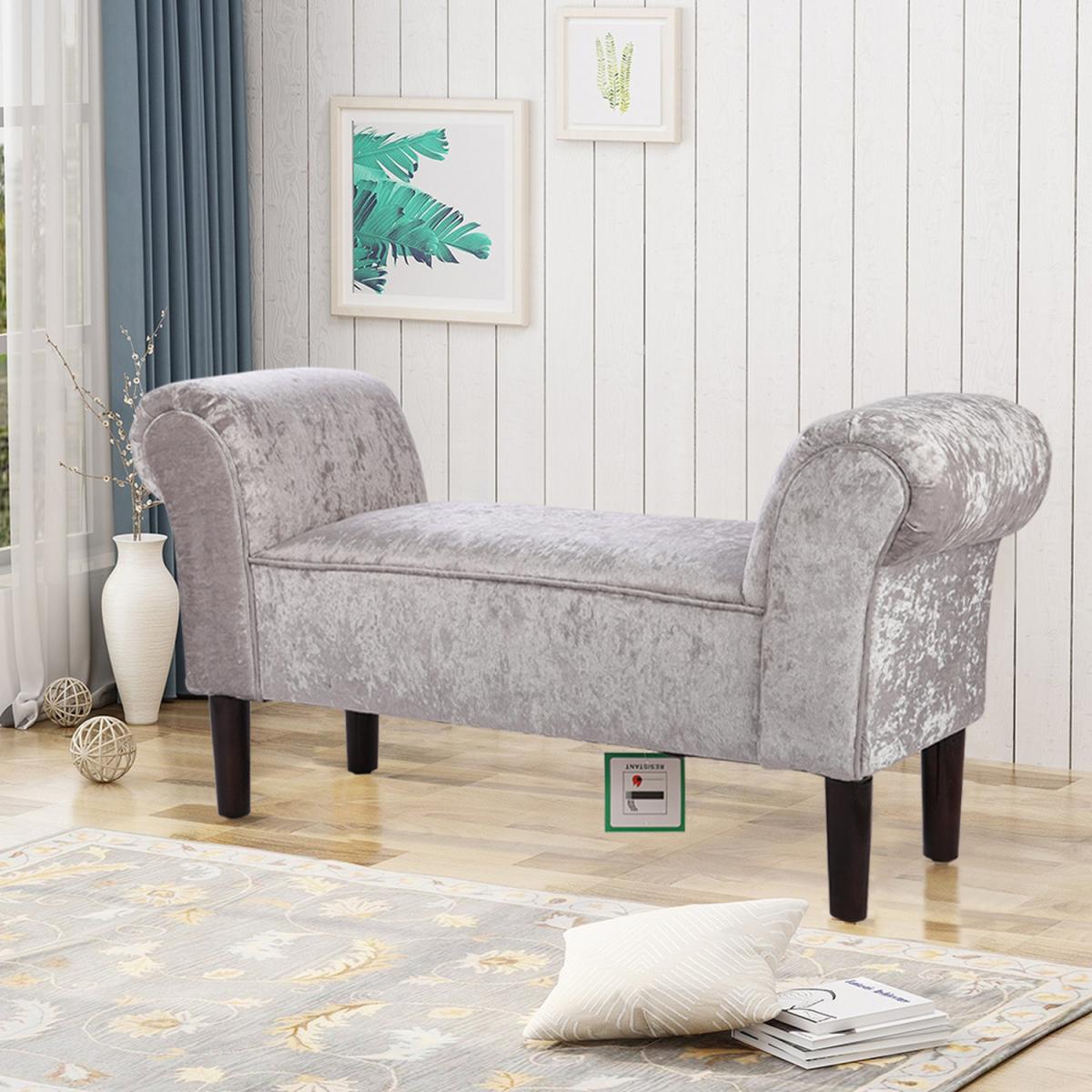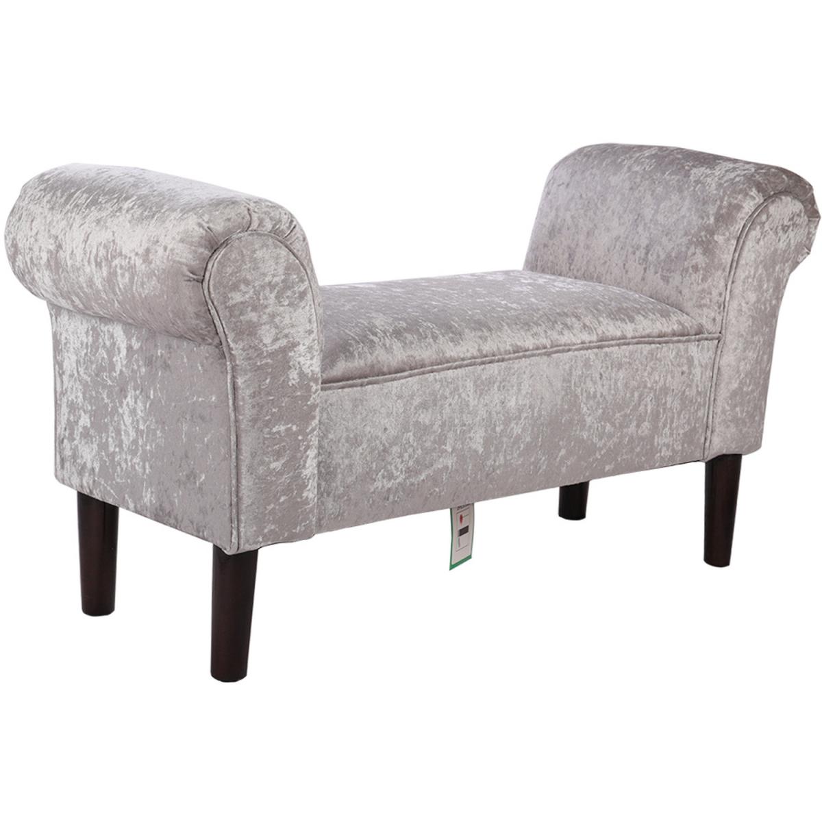 Upholstered in crushed velvet-feel fabric, whilst the thick padded cushion ensures you are in complete comfort when sitting. Four painted rubber wooden legs for solid support. Great for seating, resting your feet up or creating a sophisticated atmosphere in your rooms whether in the hallway, living- or bedroom. This stool is long enough to comfortably sit 3 people. Easy assembly required. This piece of furniture is very stylish and versatile, a great addition to any home.