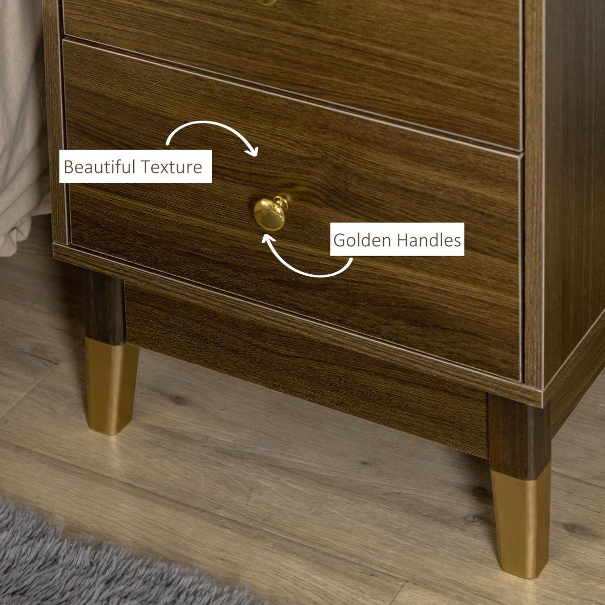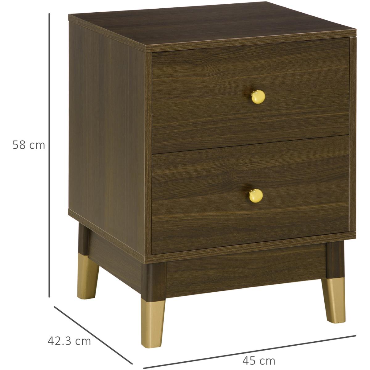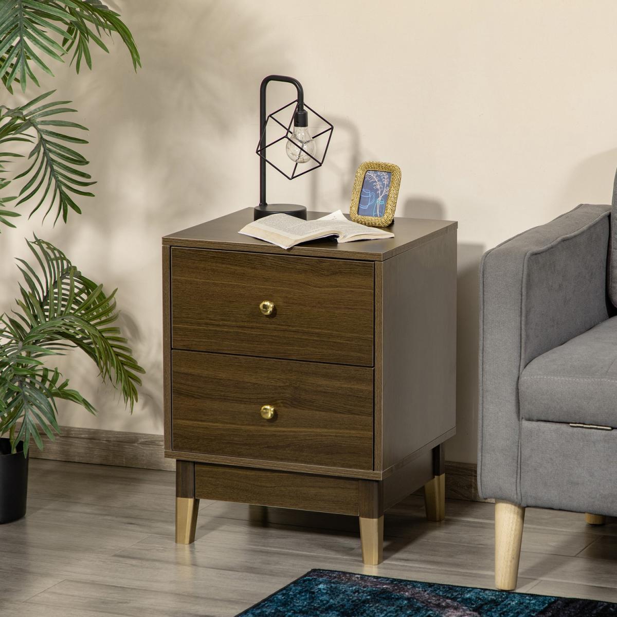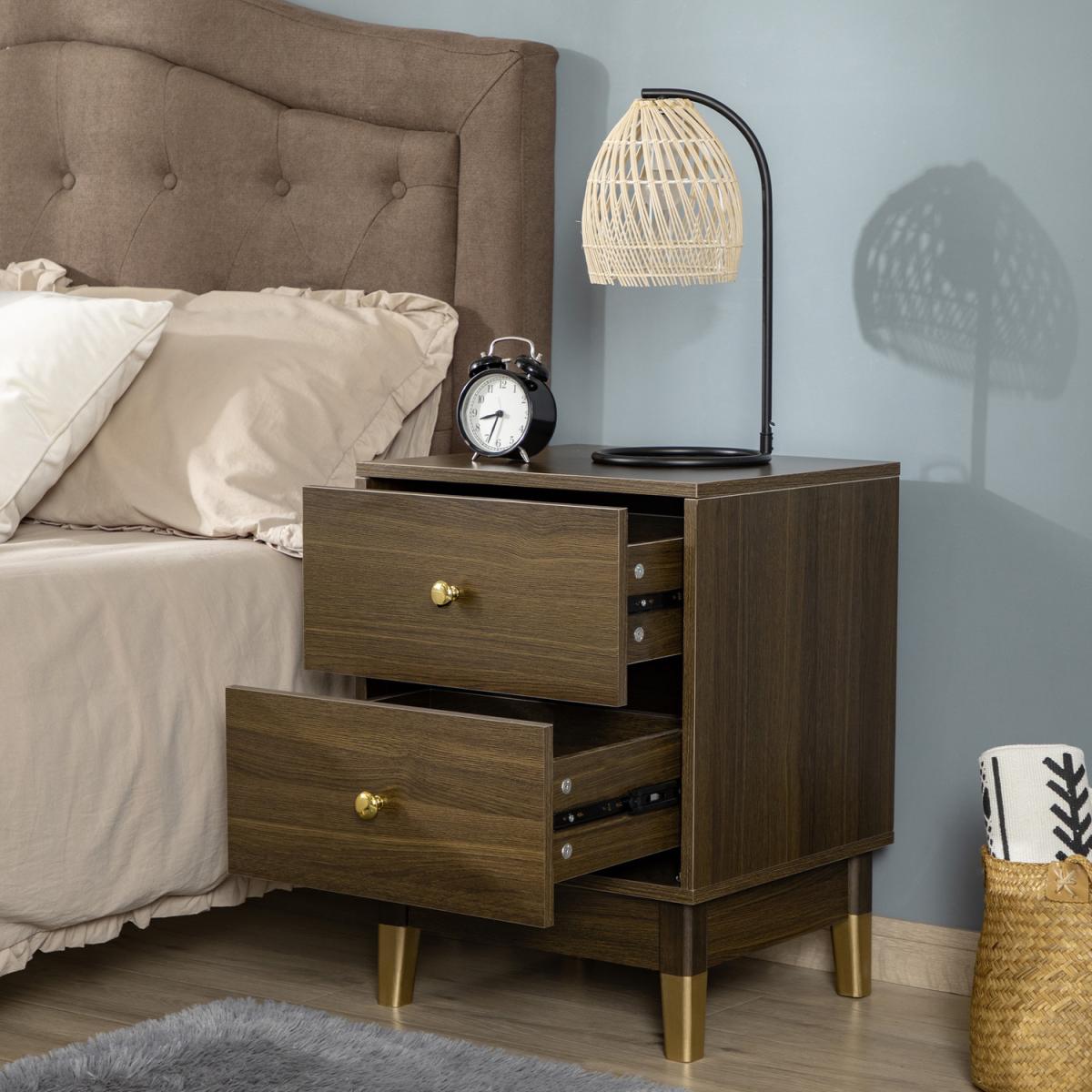 Modern Bedside Table, Bedroom Cabinet with 2 Drawers, Storage Organiser - Brown, Gold